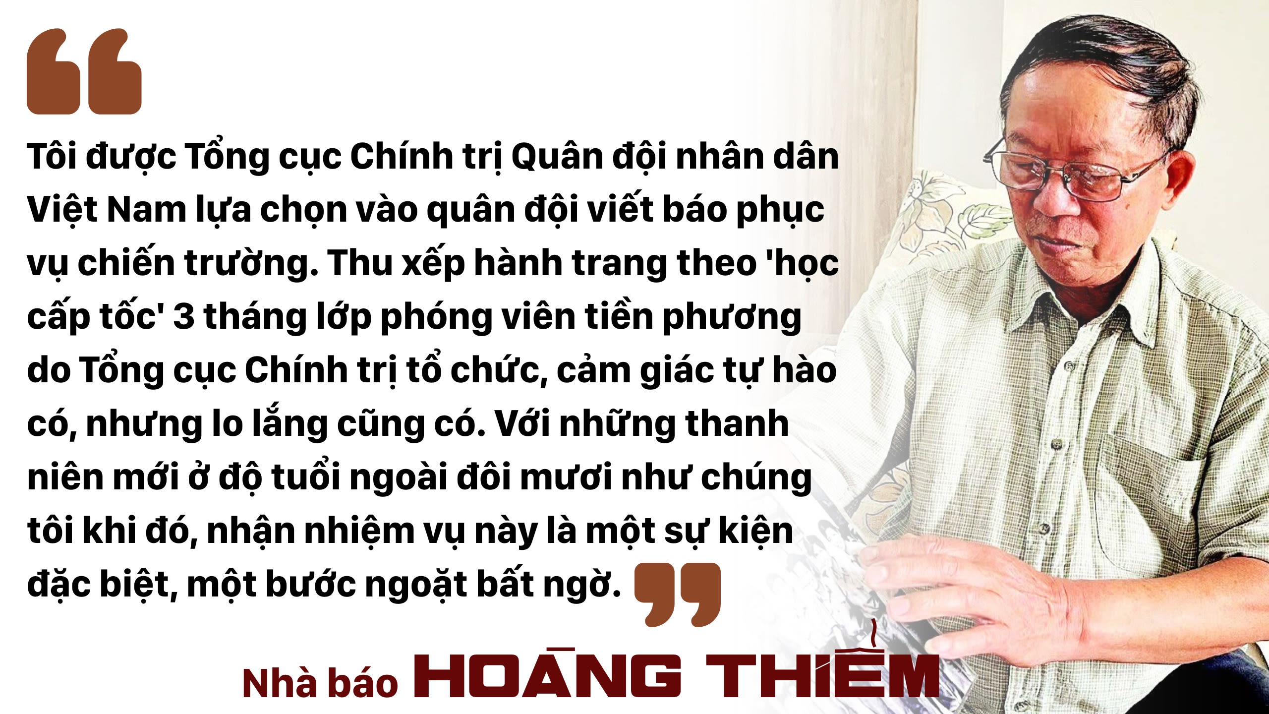 Ông cười kể, cứ nghĩ theo học đào tạo báo chí để sau này quay về tờ báo tỉnh nhà tiếp tục cống hiến cho quê hương, thế nhưng một sự kiện bất ngờ xảy đến. “Tôi được Tổng cục Chính trị Quân đội nhân dân Việt Nam lựa chọn vào quân đội viết báo phục vụ chiến trường. Thu xếp hành trang theo 'học cấp tốc' 3 tháng lớp phóng viên tiền phương do Tổng cục Chính trị tổ chức, cảm giác tự hào có, nhưng lo lắng cũng có. Với những thanh niên mới ở độ tuổi ngoài đôi mươi như chúng tôi khi đó, nhận nhiệm vụ này là một sự kiện đặc biệt, một bước ngoặt bất ngờ".