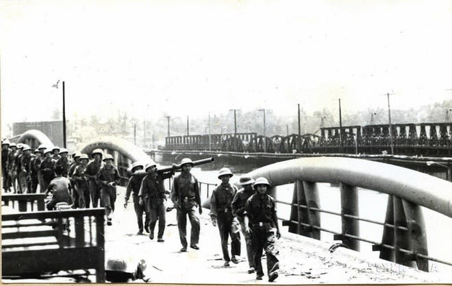 Quân giải phóng hành quân qua cầu Nguyễn Tri Phương, tiến vào Đà Nẵng, ngày 29/3/1975. (Ảnh: TTXVN)