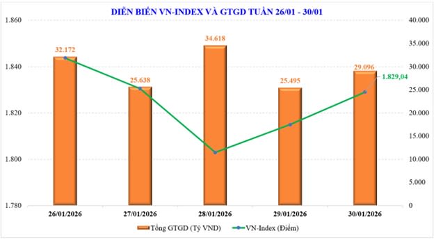 Thanh khoản cũng là một điểm mà MBS chú ý. Thanh khoản tuy giảm tuần thứ 2 liên tiếp nhưng trong bối cảnh chỉ số giảm thì đây là tín hiệu phù hợp với diễn biến chung. Bên cạnh đó, dù thanh khoản giảm nhưng vẫn ở mức khá cao (trên 32.000 tỷ đồng) so với 2 tháng cuối năm 2025 (25.600 tỷ đồng), cho thấy có dòng tiền quay trở lại thị trường và có cầu bắt đáy ở nhóm cổ phiếu giảm sâu trong tuần vừa qua.