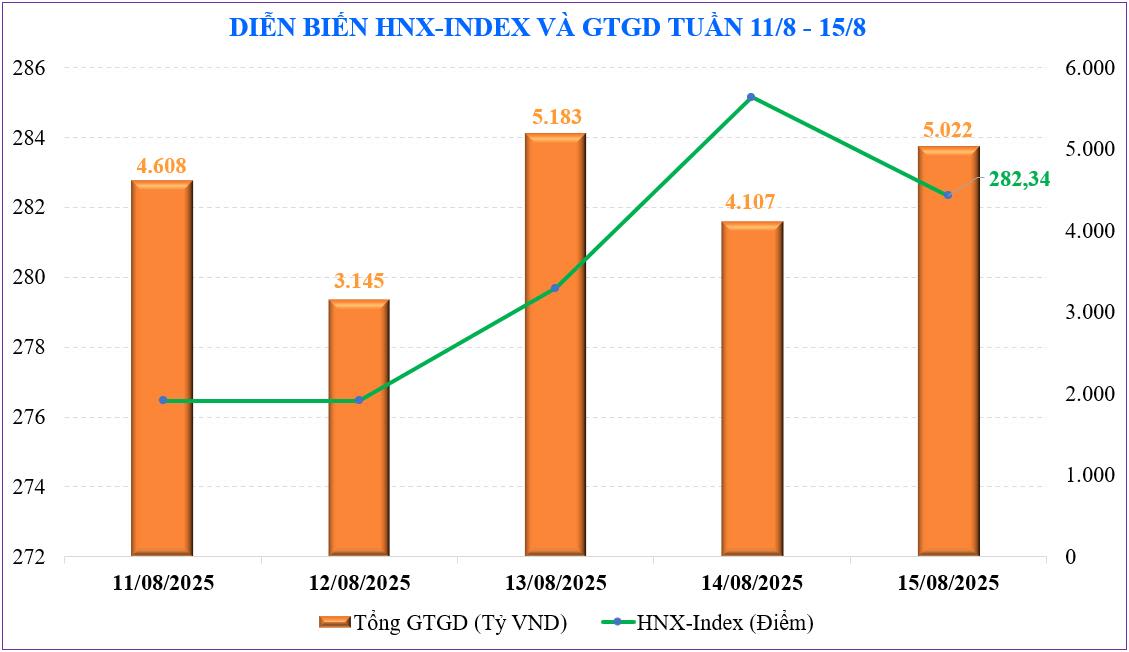 Trên sàn Hà Nội, hai chỉ số chính cũng có diễn biến tích cực. Chỉ số HNX-Index có tuần tăng +9,88 điểm, kết tuần tại 282,34 điểm, tương ứng mức tăng +3,63% so với tuần trước. Trong khi chỉ số UPCoM-Index tăng +1,07 điểm để đóng cửa tại 109,61 điểm.