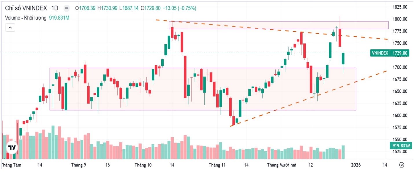 Theo MBS, về mặt kỹ thuật, việc chỉ số VN-Index đóng cửa phía trên vùng tích lũy 1.600-1.700 điểm đang mang lại kỳ vọng về xu hướng tăng tiếp tục được duy trì, hoặc tạo vùng dao động ngay phía trên vùng tích lũy này trước khi bước vào nhịp tăng kiểm định lại vùng đỉnh lịch sử khi các thông tin vĩ mô cuối năm được công bố hoặc các kỳ vọng mới ở giai đoạn đầu năm. Ở thời điểm hiện tại, chỉ số VN-Index vẫn đang nằm trên các đường trung bình quan trọng: từ MA20, MA50, MA100 cho tới MA20, củng cố xu hướng tăng vẫn tiếp diễn.