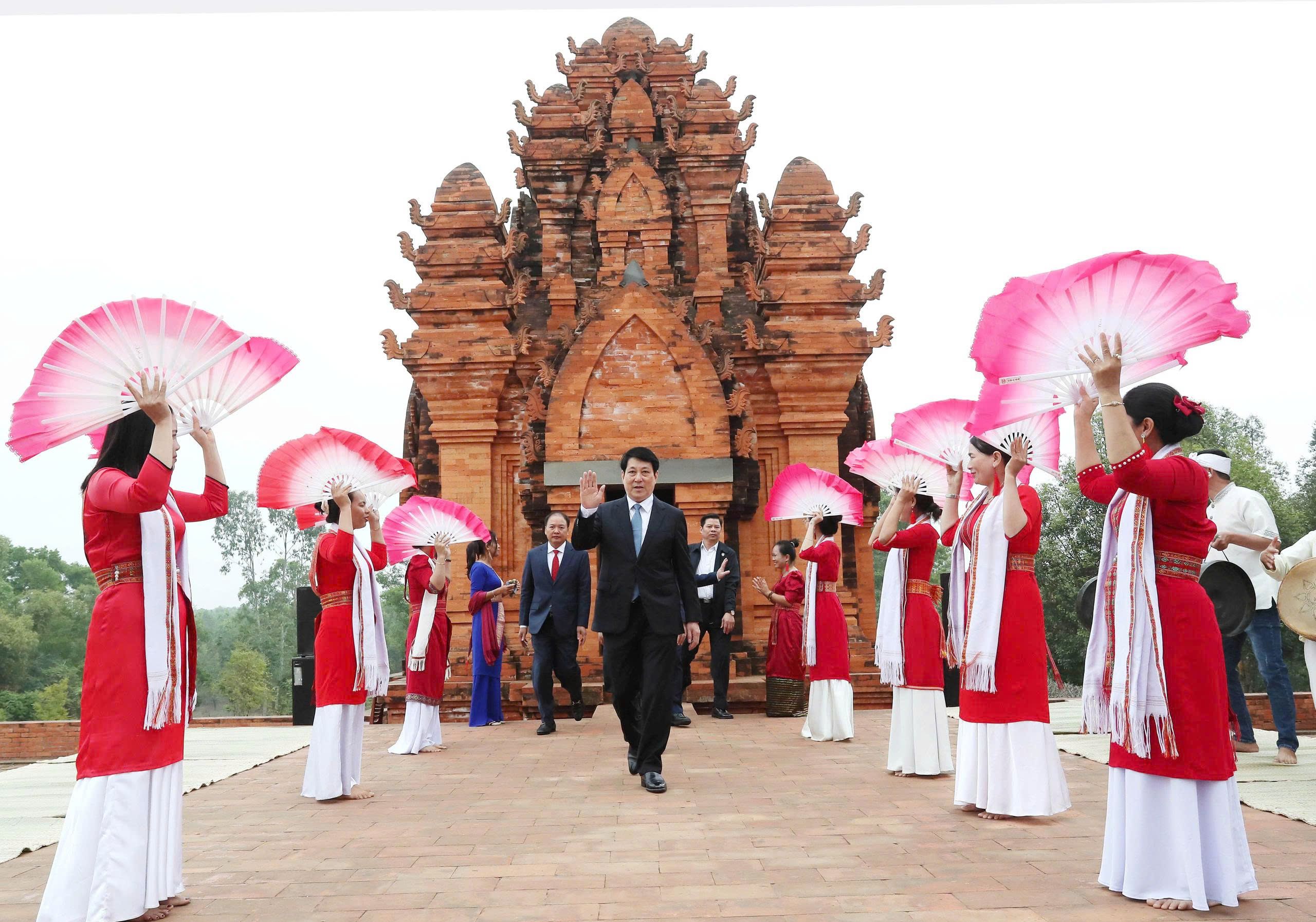 Chủ tịch nước Lương Cường tới dự nghi thức mở cửa tháp Chăm và dâng trầm trên đền tháp của đồng bào Chăm tỉnh Ninh Thuận, tại nơi thờ Linga - vua Pôklông Garai để cầu mong quốc thái dân an, mưa thuận gió hòa.
