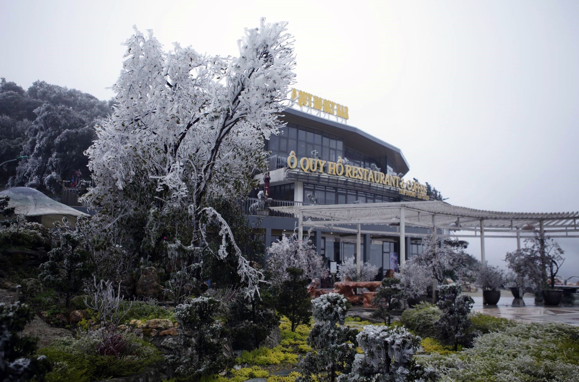 Băng giá bao phủ khu vực Cổng trời, đỉnh đèo Ô Quý Hồ (Tam Đường, Lai Châu), ngày 23/2/2022. (Ảnh: Quý Trung)