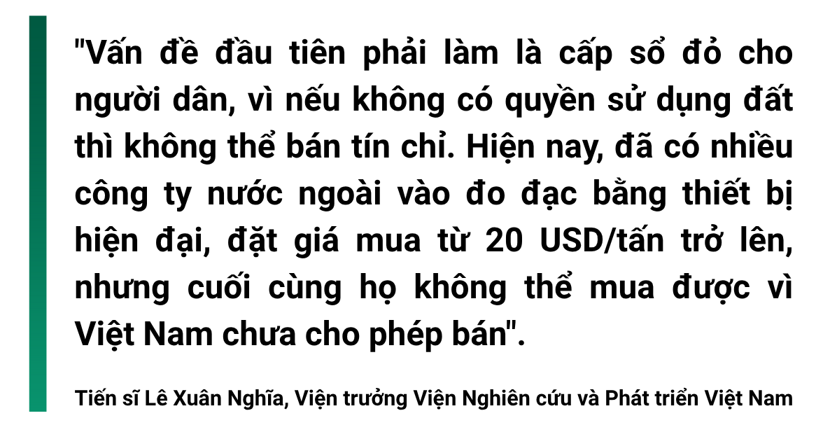 Vấn đề đầu tiên phải làm là cấp sổ đỏ cho người dân, vì nếu không có quyền sử dụng đất thì không thể bán tín chỉ. Hiện nay, đã có nhiều công ty nước ngoài vào đo đạc bằng thiết bị hiện đại, đặt giá mua từ 20USD/tấn trở lên, nhưng cuối cùng họ không thể mua được vì Việt Nam chưa cho phép bán.