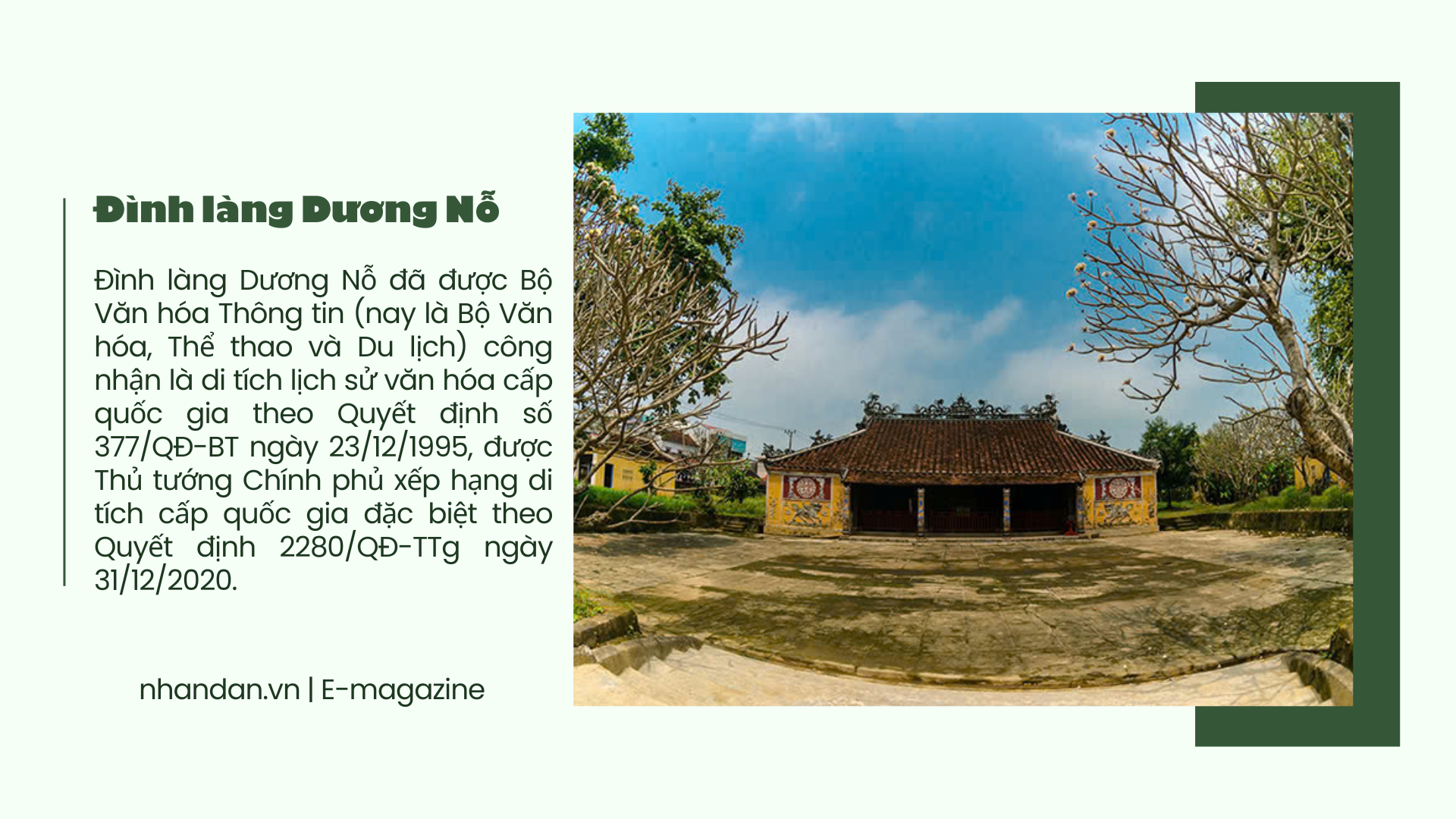 Làng Dương Nỗ có ngôi đình bề thế, uy nghi được xây dựng từ đời vua Lê Thánh Tông (1471), nằm bên dòng sông Phổ Lợi, phường Dương Nỗ, quận Thuận Hóa, thành phố Huế, là di tích tiêu biểu trong hệ thống di tích lưu niệm về thời niên thiếu của Chủ tịch Hồ Chí Minh tại thành phố Huế.