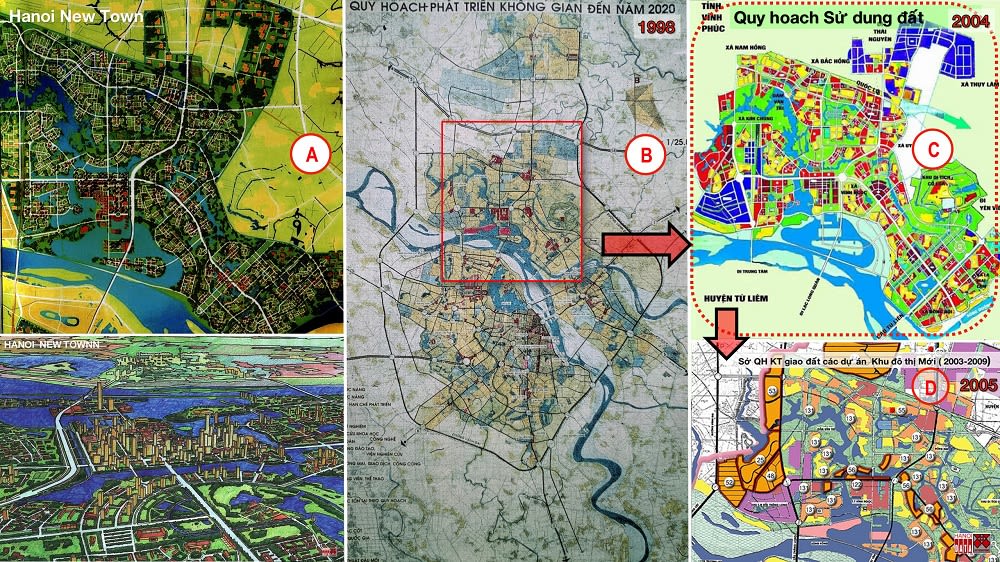 Sau khi Việt Nam mở cửa , nhiều nhà đầu tư nước ngoài tới Hà Nội tìm kiếm cơ hội.Năm 1997, Deawoo bỏ ra khoảng 3 triệu USD để lập Dự án Thành phố Mới (Hanoi New Town) tại Bắc sông Hồng, họ thuê các công ty tư vấn hàng đầu thế giới như Bechtel, SOM, Rem Koolhaas (OMA) thực hiện. Quy mô 8.000ha, tổng đầu tư 40 tỷ USD. Dự án vẽ mặt nước sông Hồng đi sâu vào Bắc sông Hồng (ảnh A). Khủng hoảng Tài chính châu Á 1998 làm các nhà đầu tư BĐS nước ngoài suy sụp, dự án Hanoi New Town phá sản, nhưng nhiều nội dung dự án được đưa vào Quy hoạch chung Thủ đô Hà Nội đến năm 2020, phê duyệt năm 1998 (gọi tắt là QHC 108- ảnh B).