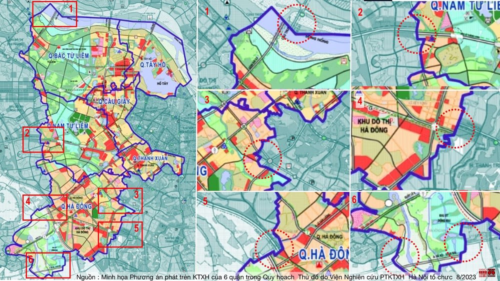 - Các quy hoạch chi tiết theo địa giới hành chính: Đã có đủ quy hoạch chi tiết cho các quận huyện (1/5000 cho Huyện và 1/2000 cho Quận), một số phường xã trọng điểm. Quy hoạch một số khu vực làng nghề truyền thống, các khu du lịch sinh thái cũng đã được bước đầu nghiên cứu.