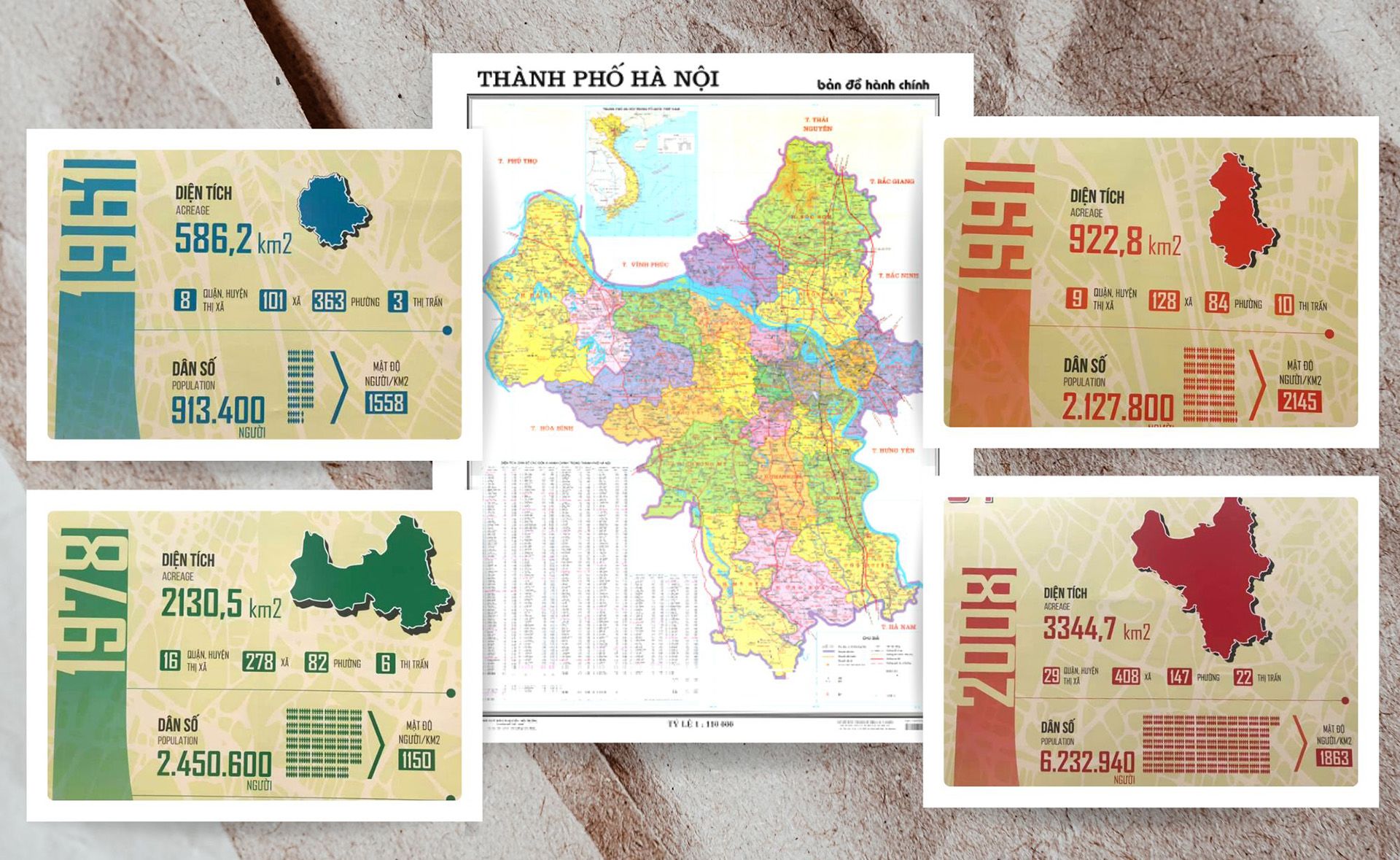 Từ những tồn tại trong phát triển đô thị và để tạo điều kiện Hà Nội xứng tầm là thủ đô của cả nước. Quốc hội khóa XIII đã có Nghị quyết về điều chỉnh địa giới Hà Nội (8/2008). Việc hợp nhất Hà Nội, Hà Tây, 4 xã của Hòa Bình và huyện Mê Linh của Vĩnh Phúc đã nâng quy mô Hà Nội từ 924km² lên 3344km² (là đô thị có quy mô lớn nhất nước) với dân số 6.400.000 người trong đó dân số đô thị là 2.630.000 người (40%).