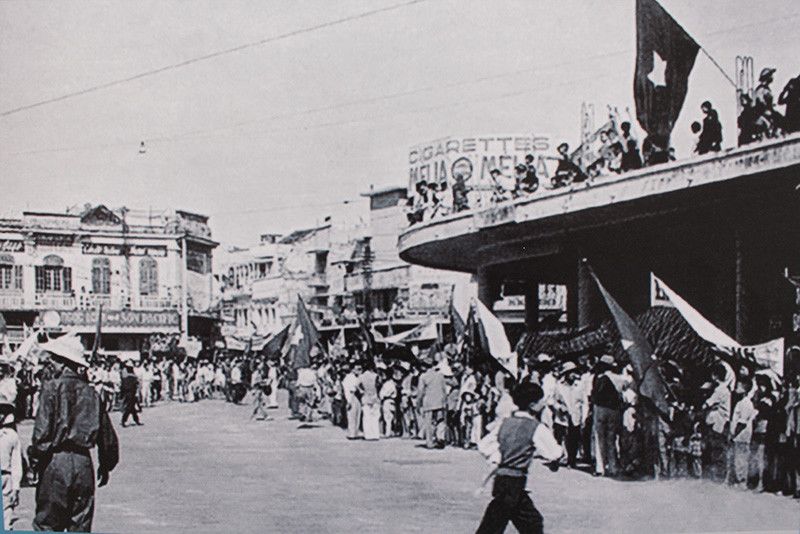 Người dân tập trung tại ngã năm Bờ Hồ (nay là Quảng trường Đông Kinh Nghĩa Thục), chờ đợi đoàn quân tiến về giải phóng Thủ đô.
