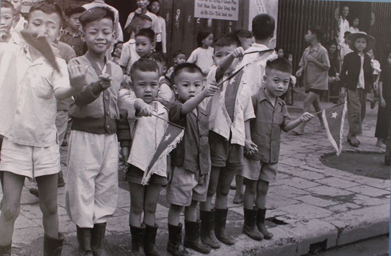 Những em nhỏ háo hức đón chào đoàn quân chiến thắng.