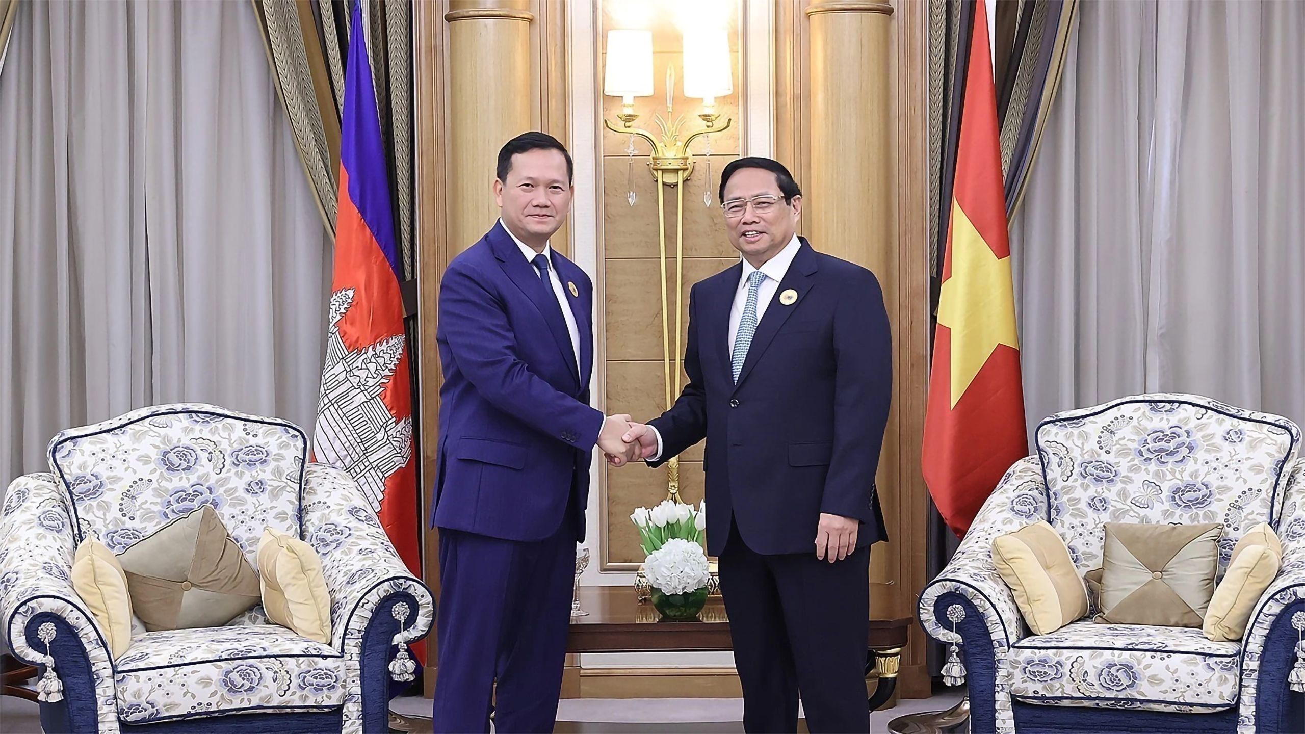 Thủ tướng Phạm Minh Chính và Thủ tướng Campuchia Hun Manet. Ảnh: TTXVN