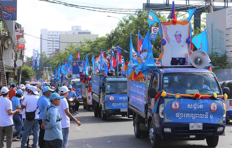 Đoàn xe diễu hành vận động tranh cử của CPP trên đường phố ở thủ đô Phnom Penh, tháng 7/2023. Ảnh: TTXVN