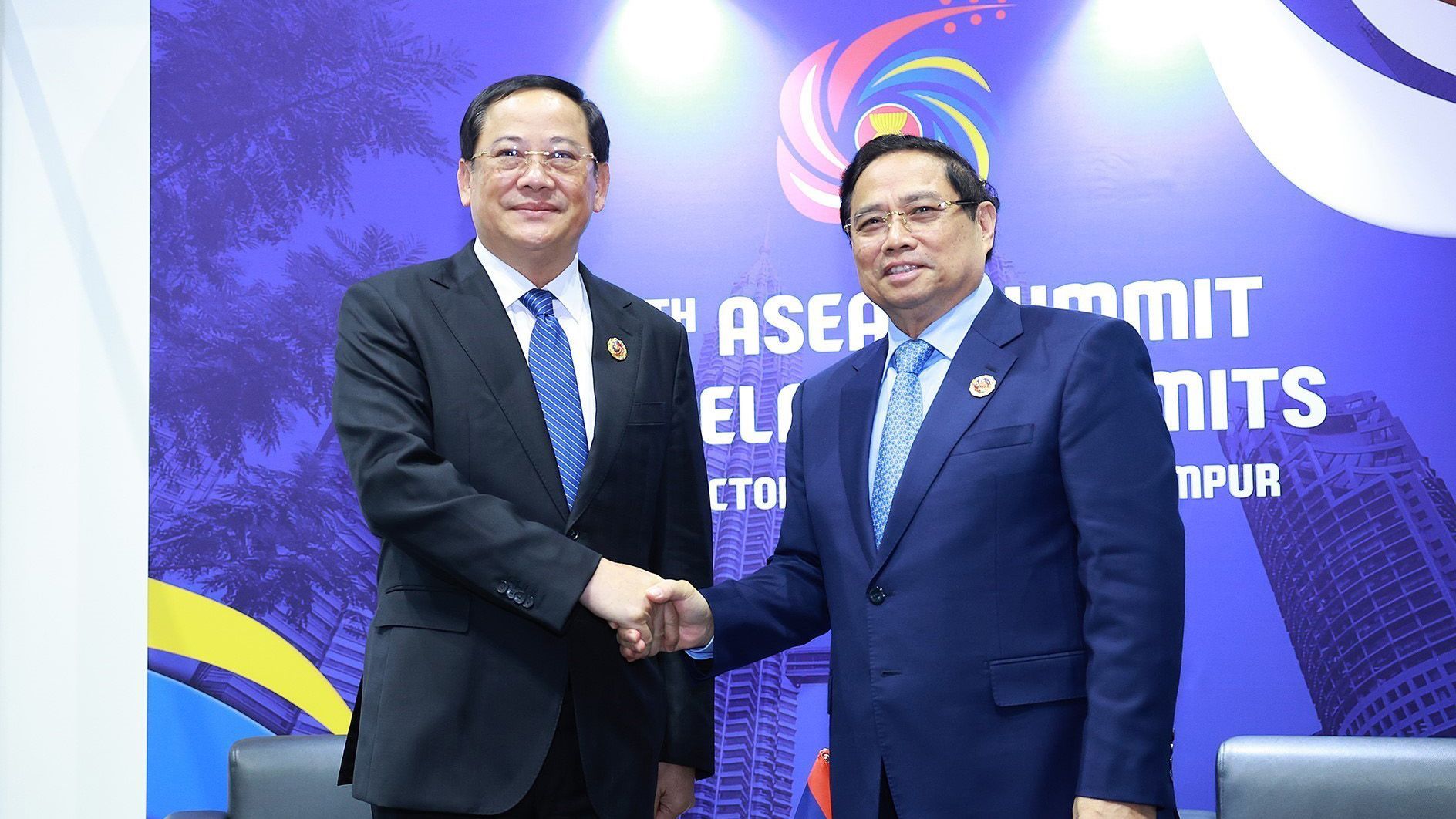 Thủ tướng Phạm Minh Chính hội kiến Thủ tướng Lào Sonexay Siphandone. (Ảnh: TTXVN)