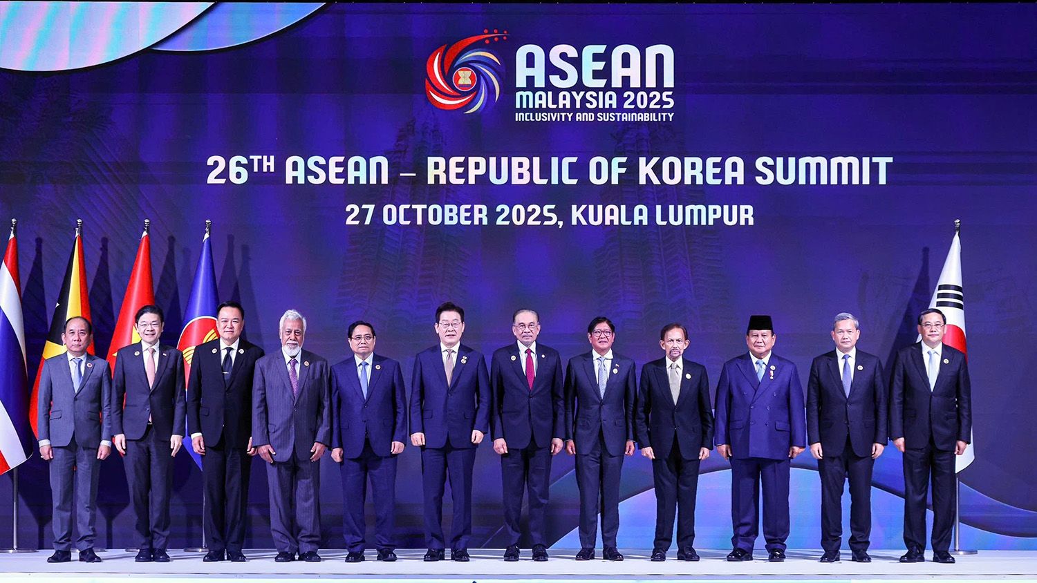 Thủ tướng Phạm Minh Chính cùng các nhà lãnh đạo ASEAN và Tổng thống Hàn Quốc Lee Jae Myung tham dự Hội nghị cấp cao ASEAN-Hàn Quốc lần thứ 26. Tại hội nghị, Thủ tướng nhấn mạnh hai bên cần tăng cường phối hợp, ứng phó kịp thời và hiệu quả các thách thức, tạo môi trường thuận lợi cho phát triển bền vững và bao trùm, có lợi cho cả hai bên và đóng góp tích cực, hiệu quả cho hoà bình, hợp tác phát triển ở khu vực và trên thế giới. Thủ tướng nêu ba định hướng lớn nhằm thúc đẩy quan hệ Đối tác chiến lược toàn diện ASEAN-Hàn Quốc thời gian tới. Theo đó, Thủ tướng đề xuất ASEAN và Hàn Quốc ưu tiên đẩy mạnh liên kết kinh tế, thương mại, đầu tư theo hướng xanh, số, tuần hoàn và bền vững; làm sâu sắc hợp tác văn hoá, giáo dục và giao lưu nhân dân, phát triển du lịch; tăng cường đóng góp cho hòa bình, an ninh, ổn định và thịnh vượng ở khu vực...