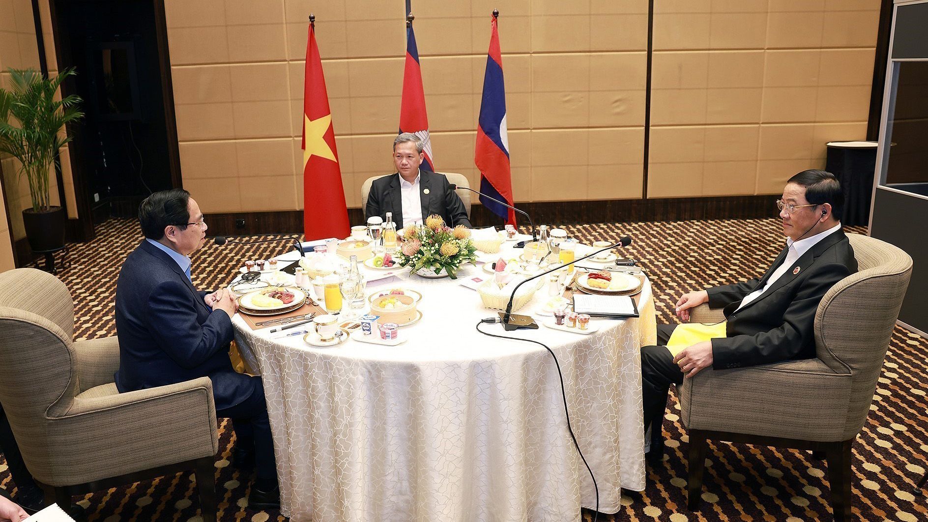 Thủ tướng Phạm Minh Chính có cuộc ăn sáng làm việc với Thủ tướng Campuchia Hun Manet và Thủ tướng Lào Sonexay Siphandone. Ba Thủ tướng nhấn mạnh trong bối cảnh tình hình thế giới và khu vực hiện nay, việc giữ gìn và phát huy truyền thống đoàn kết, gắn bó giữa Việt Nam, Campuchia và Lào càng trở nên cần thiết và quan trọng. Ba nhà lãnh đạo nhất trí tiếp tục duy trì thường xuyên trao đổi các chuyến thăm, gặp gỡ tiếp xúc ba bên; tăng cường trao đổi, hợp tác về kinh tế số, chính phủ số; đẩy mạnh hợp tác đấu tranh phòng chống các loại tội phạm, bảo vệ đường biên giới hữu nghị, hòa bình, ổn định và phát triển, đẩy nhanh phân giới cắm mốc; xử lý ổn thỏa các vấn đề phát sinh...