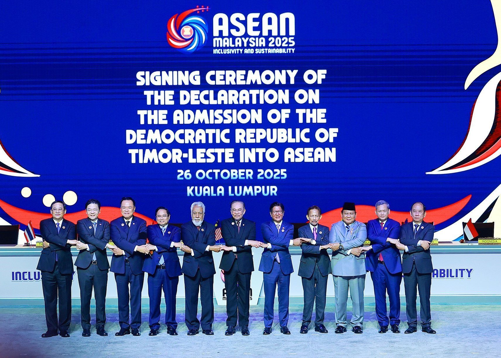 Sáng 26/10, tại Trung tâm Hội nghị Kuala Lumpur, Thủ tướng Phạm Minh Chính cùng lãnh đạo các nước ASEAN và Timor Leste tham dự Lễ khai mạc Hội nghị cấp cao ASEAN lần thứ 47 và các hội nghị cấp cao liên quan. Tại Lễ khai mạc, Thủ tướng nước chủ nhà Malaysia khẳng định, ASEAN tiếp tục đứng vững nhờ vào niềm tin vững chắc rằng, sự tôn trọng và lẽ phải sẽ luôn gắn kết các nước thành viên; nhấn mạnh việc Campuchia và Thái Lan ký thỏa thuận hòa bình lần này đã minh chứng cho sức mạnh của niềm tin, cũng như sự can đảm trong việc lựa chọn hòa giải, hòa bình. Trong khuôn khổ chương trình Lễ khai mạc, các lãnh đạo ASEAN ký Tuyên bố chính thức kết nạp Timor Leste trở thành thành viên thứ 11 của ASEAN.