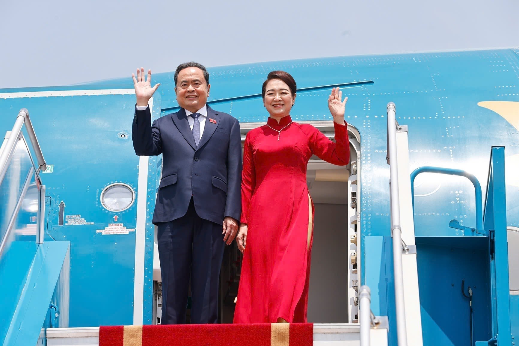 Chủ tịch Quốc hội Trần Thanh Mẫn và Phu nhân rời Hà Nội, lên đường tham dự AIPA-46 và thăm chính thức Malaysia, ngày 16/9/2025. Ảnh: TTXVN