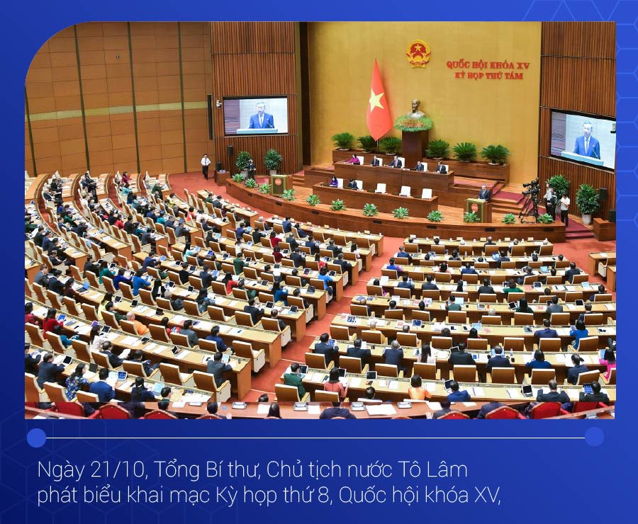 Tiếp đó, ngày 21/10, phát biểu khai mạc Kỳ họp thứ 8, Quốc hội khóa XV, Tổng Bí thư, Chủ tịch nước Tô Lâm đã giao nhiệm vụ cho Quốc hội: “Chủ động, tích cực, khẩn trương xây dựng hành lang pháp lý cho những vấn đề mới, xu hướng mới (nhất là những vấn đề liên quan đến cách mạng công nghiệp 4.0, trí tuệ nhân tạo, chuyển đổi số, chuyển đổi xanh…) tạo khung khổ pháp lý để thực hiện thành công cuộc cách mạng về chuyển đổi số, tạo đột phá cho phát triển đất nước trong những năm tiếp theo”.