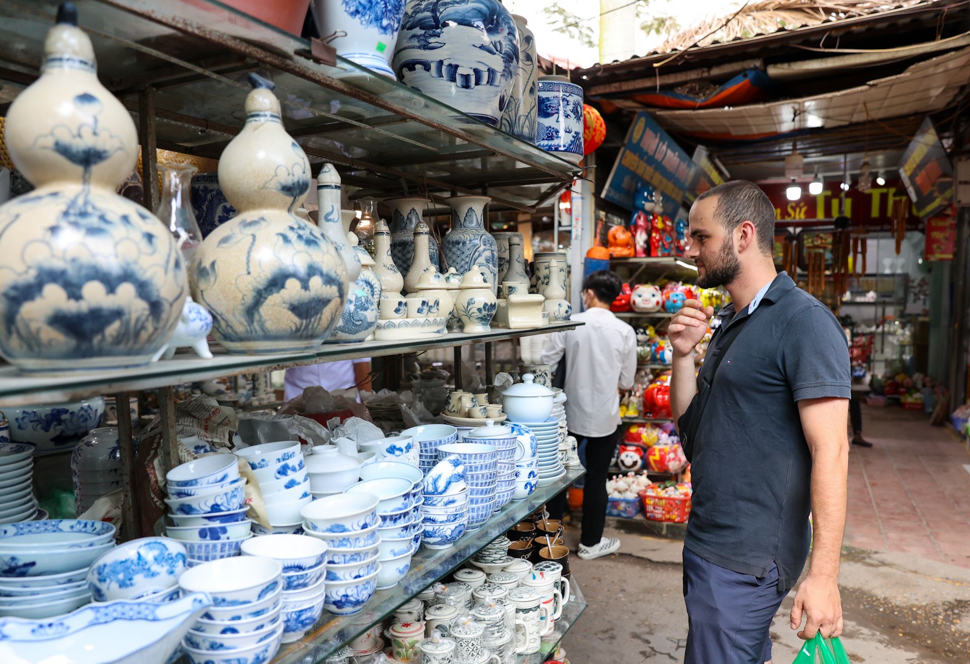 Khách du lịch tham quan làng gốm Bát Tràng. (Ảnh: Đăng Anh)