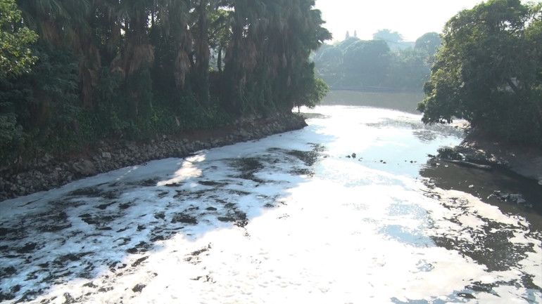 Không chỉ có bầu trời bị đầu độc. Dòng nước và đất đai ở vùng phía đông Hà Nội cũng đang oằn mình chịu đựng. Hệ thống thủy lợi Bắc Hưng Hải – từng là huyết mạch tưới tiêu quan trọng của Hà Nội, Hưng Yên, Bắc Ninh – nay bị biến dạng đến mức người dân gọi là “dòng sông chết”. Nước sông đen sì, đặc quánh, bốc mùi hôi nhiều ngày trong năm.