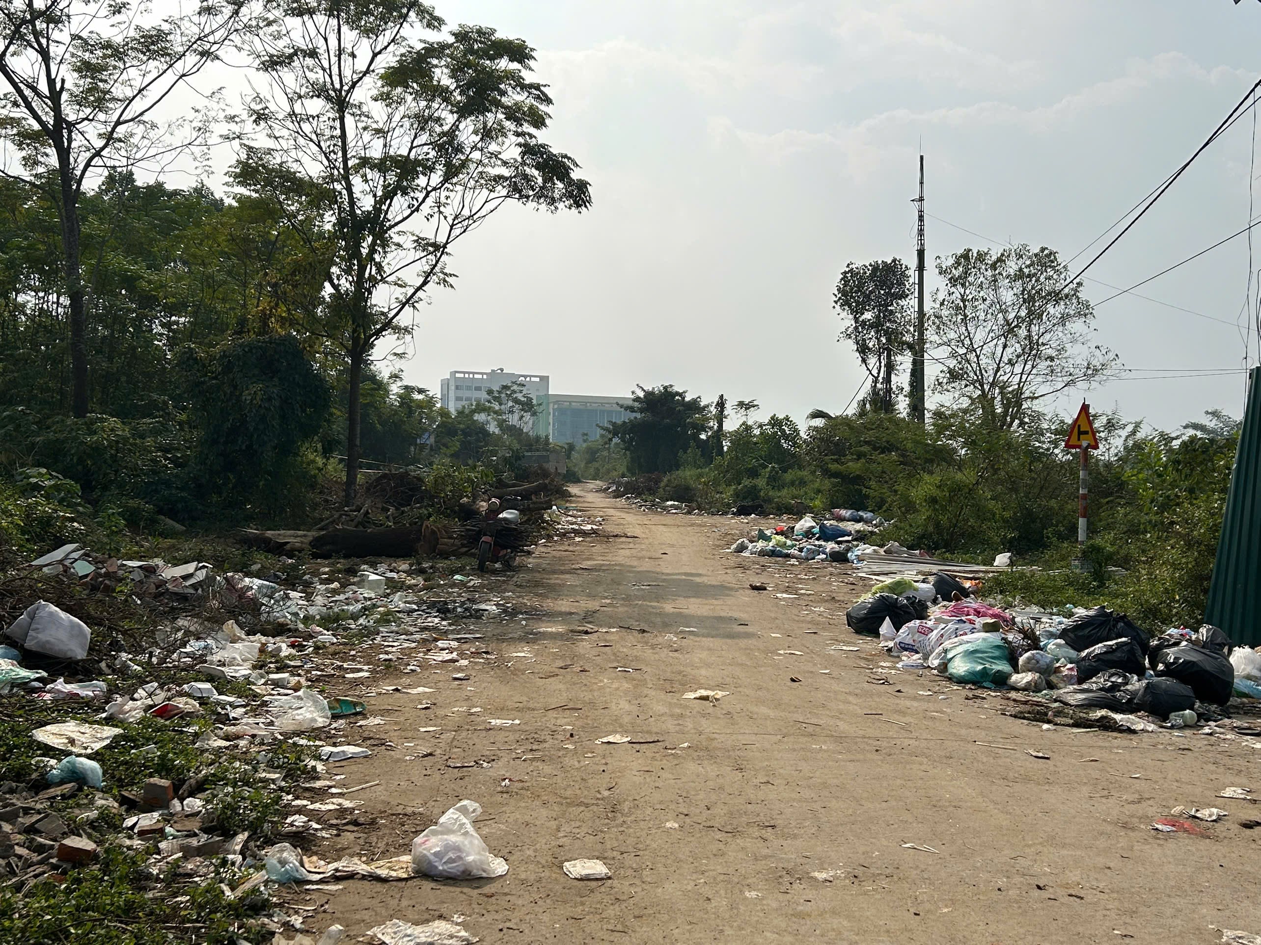 Từ phía tây của Hà Nội, chiều 9/12, một sinh viên đại học FPT (Thạch Thất, Hà Nội) đã phản ánh về bãi tập kết rác gần khu vực trường. Tại đây, hàng đống rác thải bị vứt bỏ ngổn ngang dọc hai bên đường đi, thậm chí có đống rác còn đang cháy, khói xám bốc lên nghi ngút. Xung quanh có rất nhiều tro tàn do đốt rác.
