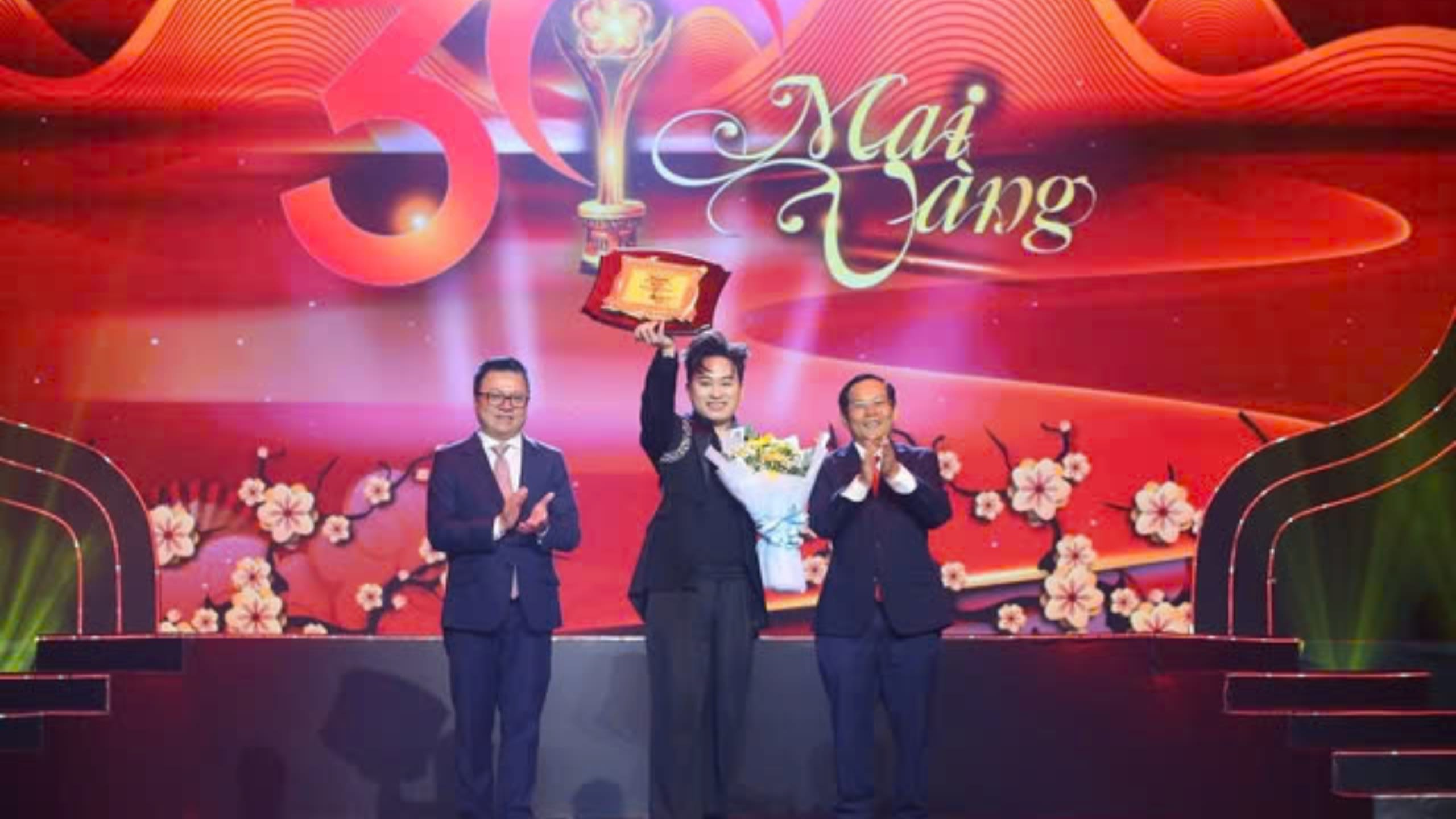Ông Lê Quốc Minh và ông Tô Đình Tuân trao giải thưởng Nghệ sĩ Vì cộng đồng năm 2024 cho ca sĩ Tùng Dương.