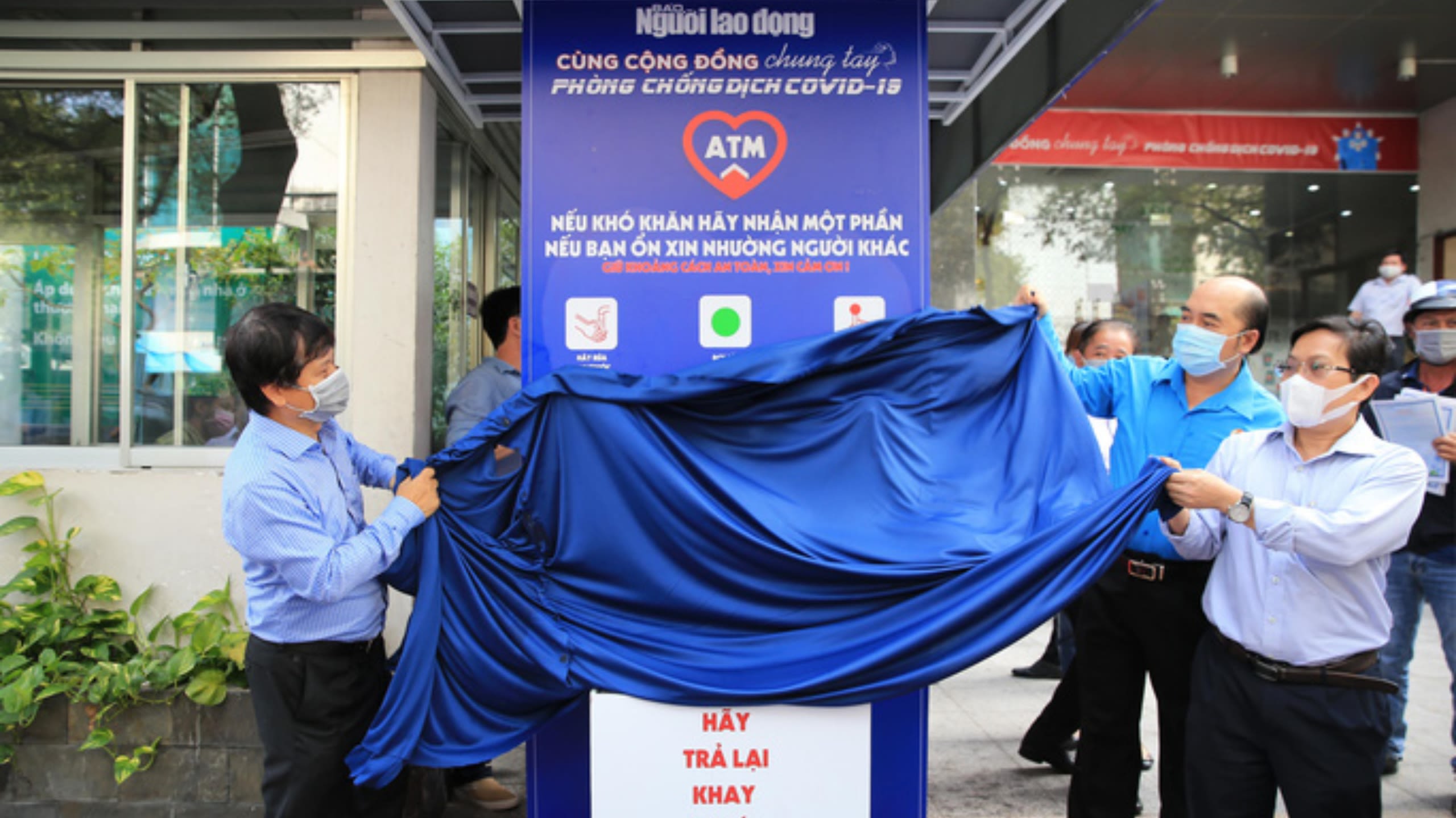 Lễ khai trương "Cây ATM thực phẩm miễn phí" tại trụ sở Báo Người Lao Động.