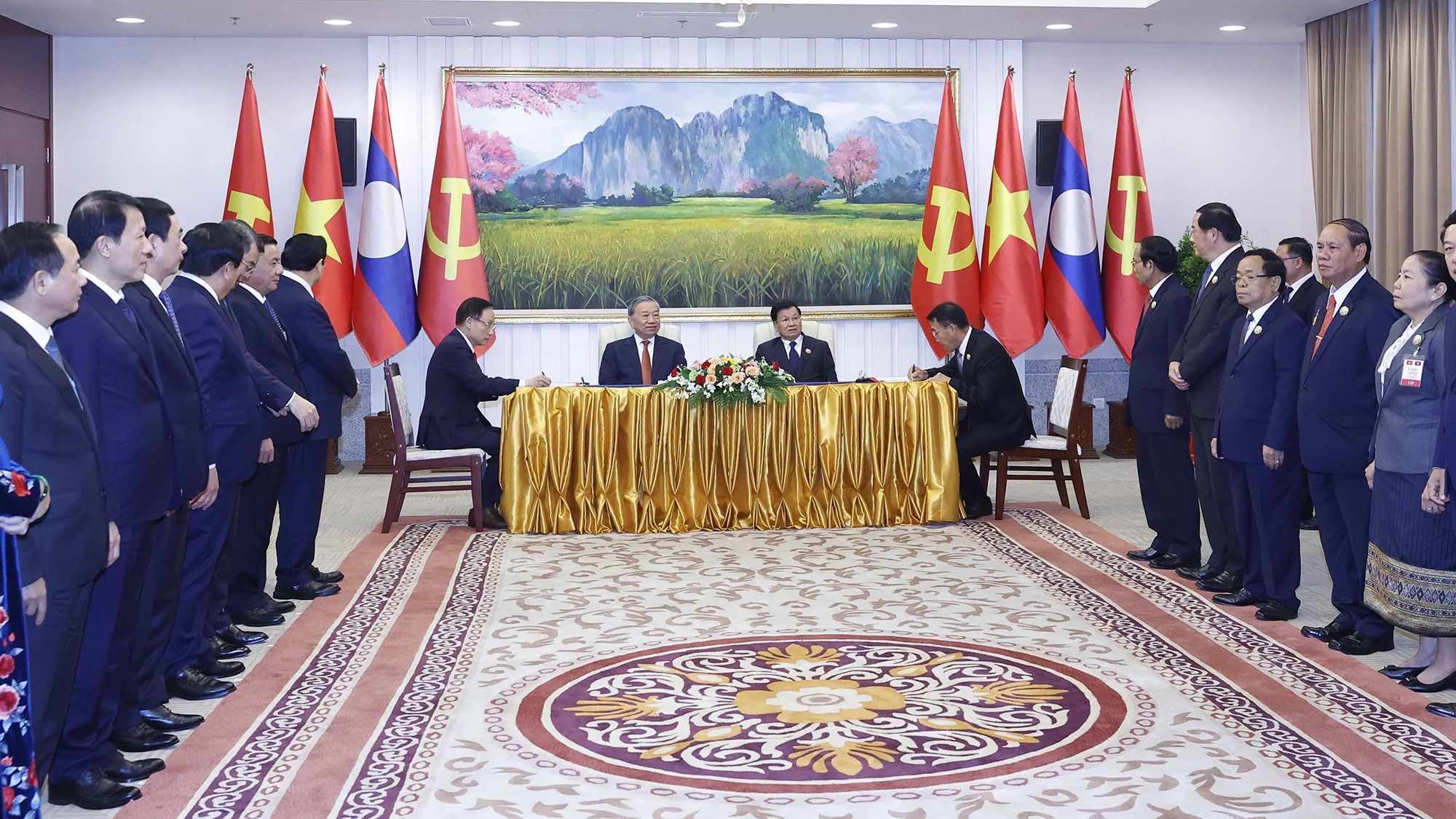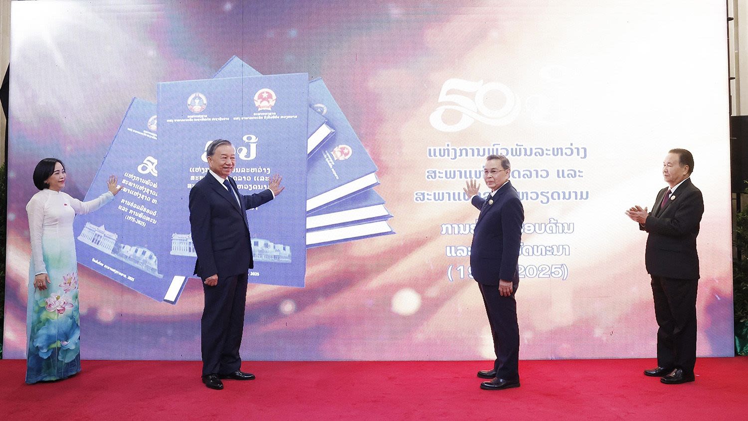 Генеральный секретарь ЦК КПВ То Лам вместе с Генеральным секретарем ЦК НРПЛ, Президентом Лаоса присутствовал на церемонии вручения 12 важных документов о сотрудничестве между министерствами, ведомствами, местными органами власти и заинтересованными структурами двух стран, а также вместе с Председателем Национальной ассамблеи Лаоса принял участие в запуске электронной книги «50 лет отношений между Национальным собранием Вьетнама и Национальной ассамблеей Лаоса – Всеобъемлющее сотрудничество и развитие (1975-2025 гг.)».