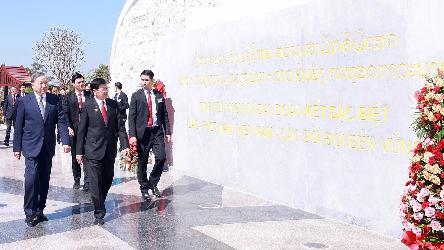 Генеральный секретарь ЦК КПВ То Лам с супругой и высокопоставленная делегация Вьетнама приняли участие в церемонии открытия Парка вьетнамско-лаосской дружбы во Вьентьяне. Это символический объект, подарок Партии, Государства и народа Вьетнама братской Партии, Государству и народу Лаоса по случаю 50-й годовщины Национального праздника Лаоса и в честь предстоящих съездов двух Партий.