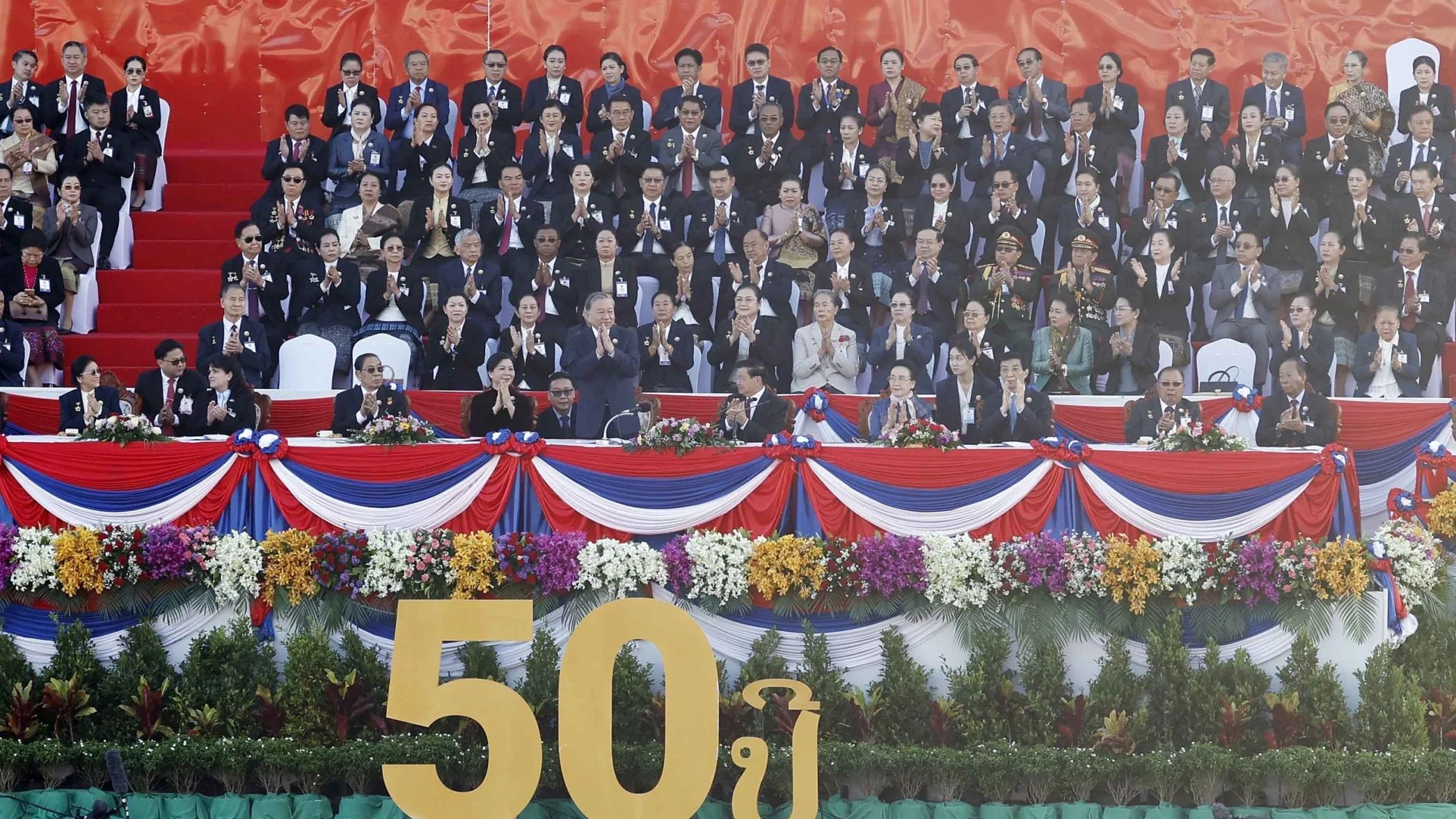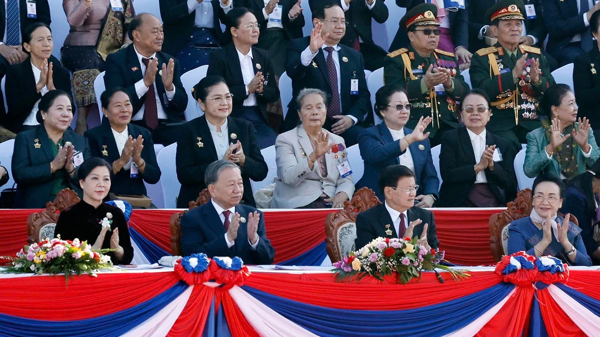 Генеральный секретарь ЦК КПВ То Лам с супругой принимает участие в праздновании 50-й годовщины Национального праздника Лаоса. Фото: ВИА