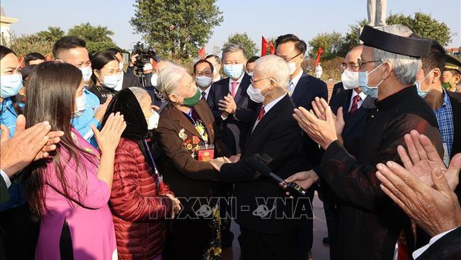 Tổng Bí thư Nguyễn Phú Trọng thăm hỏi nhân dân tại thành phố Hưng Yên, tỉnh Hưng Yên. (Ảnh: Trí Dũng/TTXVN)