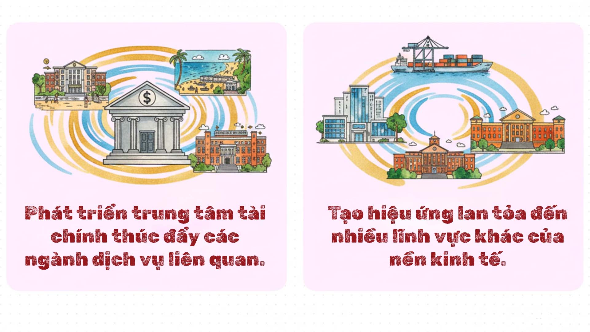 • Phát triển trung tâm tài chính quốc tế, hội nhập thị trường vốn, bảo hiểm, fintech, ngân hàng số.