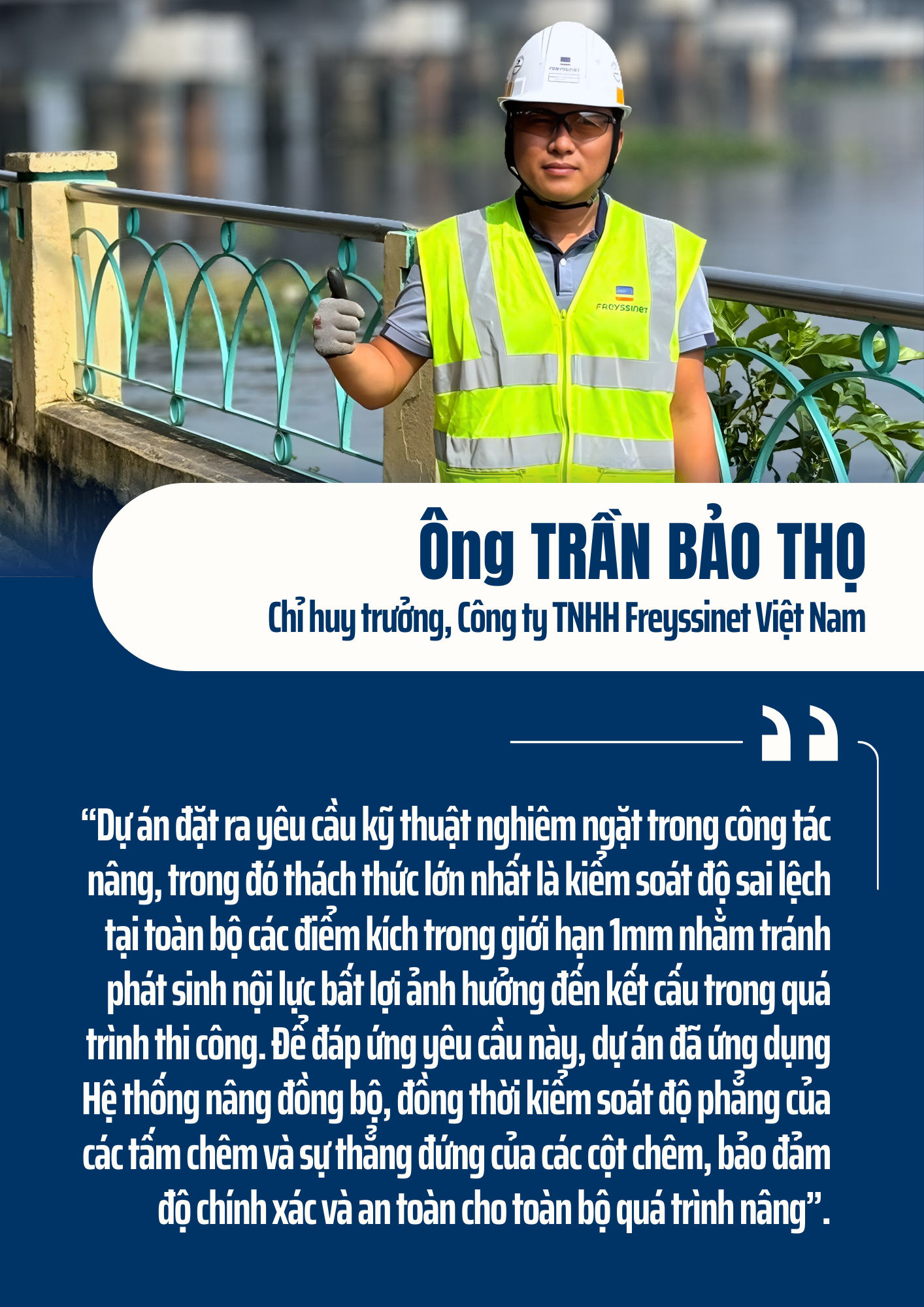 Trong suốt gần 8 tháng thi công, hàng trăm kỹ sư, công nhân đã làm việc liên tục, dõi theo từng milimet nâng lên của toàn bộ kết cấu cầu. Khi cầu Bình Triệu 1 đạt tĩnh không mới 7m và cầu Bình Phước 1 đạt 7,25m vào giữa tháng 12, niềm vui vỡ òa không chỉ với những người trực tiếp thi công mà còn với ngành giao thông Thành phố Hồ Chí Minh.