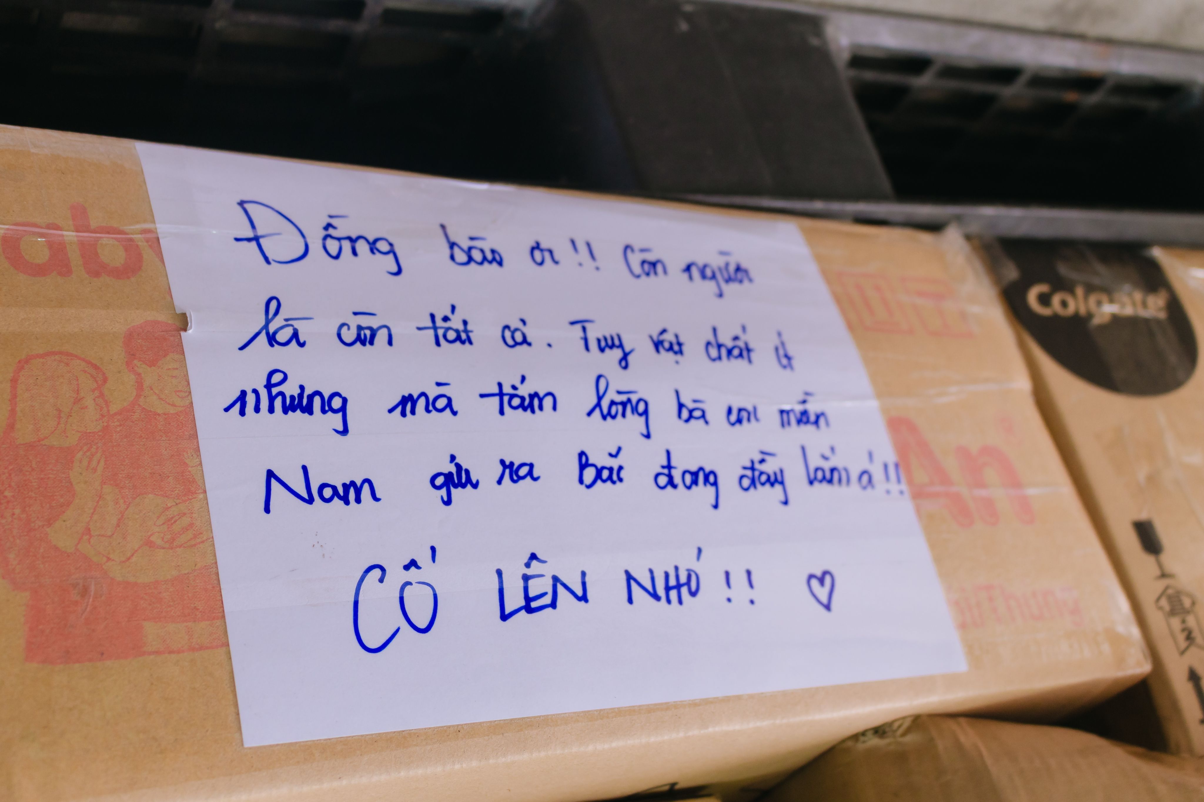 Những chuyến hàng cứu trợ của Thành phố còn mang theo những lời nhắn gửi giản dị: “Gửi một chút yêu thương đến bà con”, “Chúc bà con sớm vượt qua khó khăn”. Đó không chỉ là câu chữ, mà là sự sẻ chia chân thành từ tấm lòng của người dân Thành phố Hồ Chí Minh.
