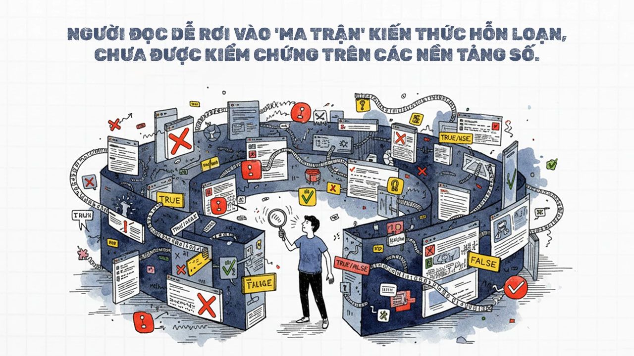 Tuy nhiên, mặt trái của sự tiện lợi, chính là sự thu hẹp của “đọc sâu”. Sự bùng nổ nội dung số không chỉ thay đổi phương tiện tiếp cận tri thức mà còn ảnh hưởng đến hành vi đọc. Khi thông tin đến quá nhanh, quá nhiều, người dùng dễ hình thành thói quen đọc lướt, tiếp nhận nông, phụ thuộc thuật toán gợi ý, khiến khả năng tập trung và phân tích bị suy giảm.