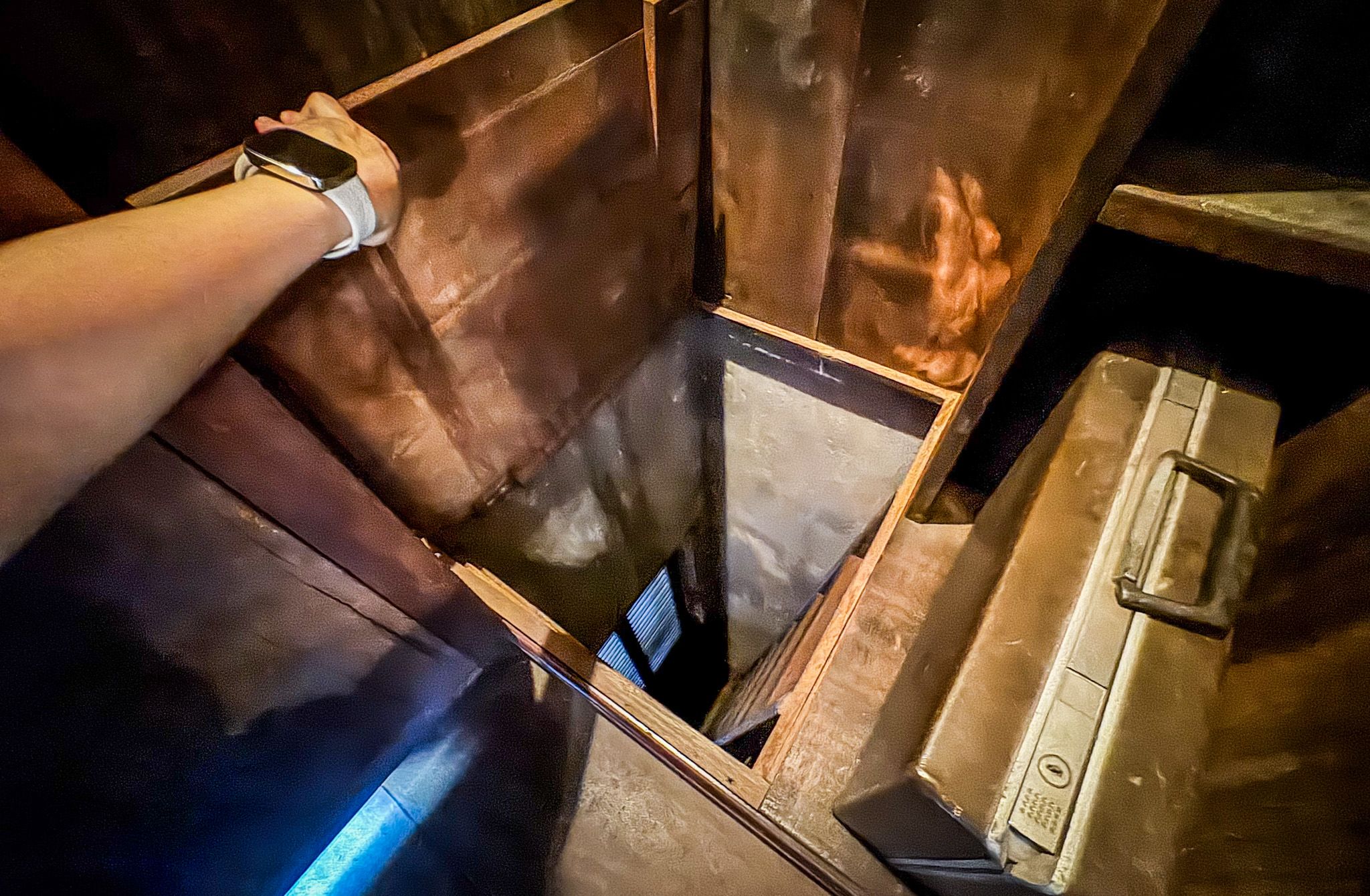 Căn hầm được nguỵ trang thành một chiếc tủ quần áo với cầu thang thoát hiểm bên dưới đáy tủ.