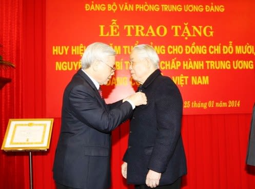 Xin trân trọng giới thiệu bài phát biểu của Tổng Bí thư Nguyễn Phú Trọng nhân dịp trao tặng đồng chí Đỗ Mười Huy hiệu 75 năm tuổi Đảng. Bài đã đăng Báo Nhân Dân, số ra ngày 26/1/2014.