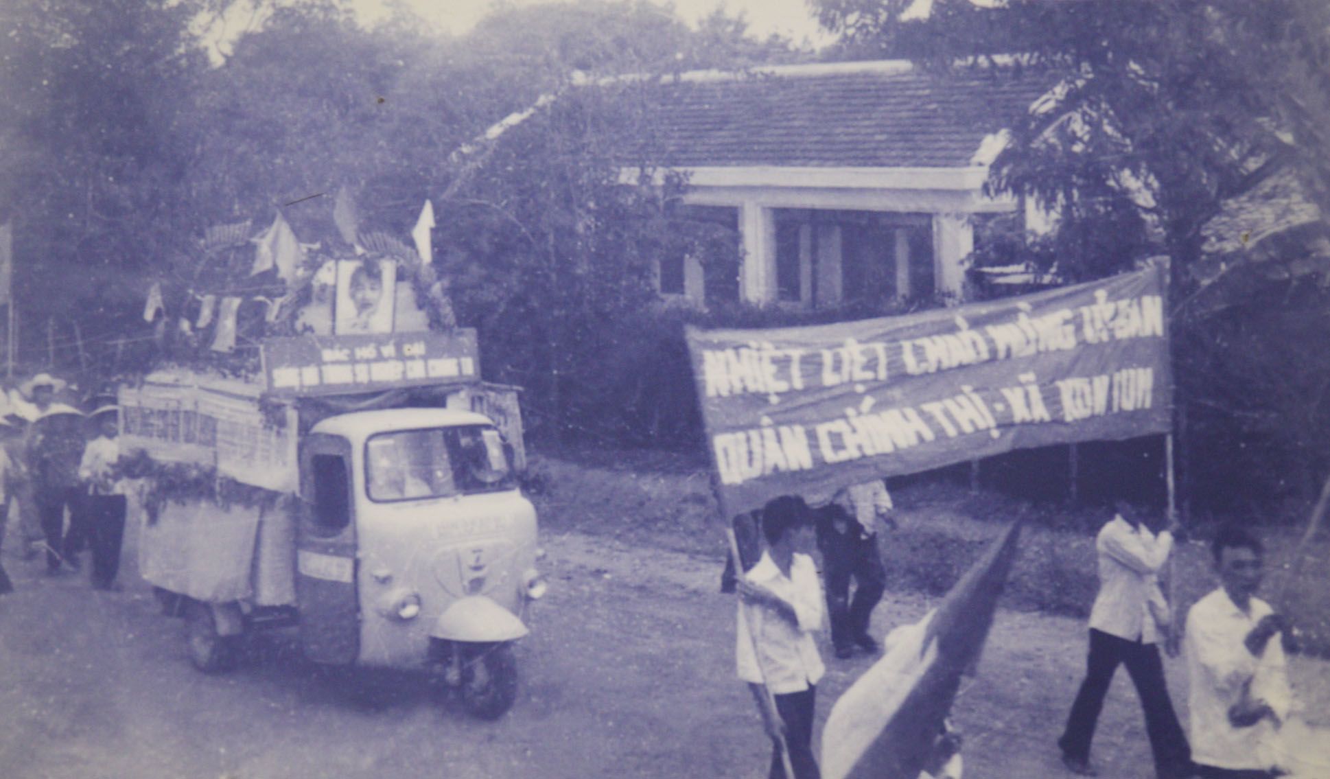 Người dân chào mừng giải phóng Kon Tum. (Ảnh: Bảo tàng quân đoàn 34)