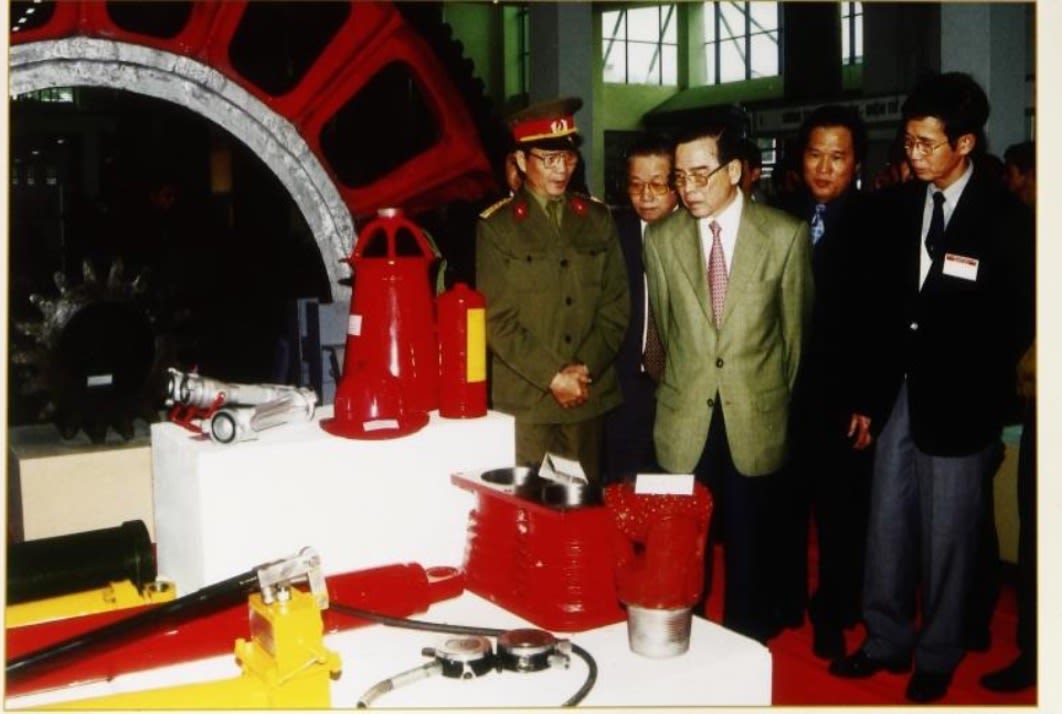 Thủ tướng Phan Văn Khải xem sản phẩm kinh tế do nhà máy quốc phòng sản xuất tại Triển lãm hàng cơ khí Việt Nam, năm 2001. (Nguồn: 60 năm Công nghiệp quốc phòng Việt Nam, Nhà xuất bản Quân đội nhân dân, Hà Nội, 2005, tr.14)