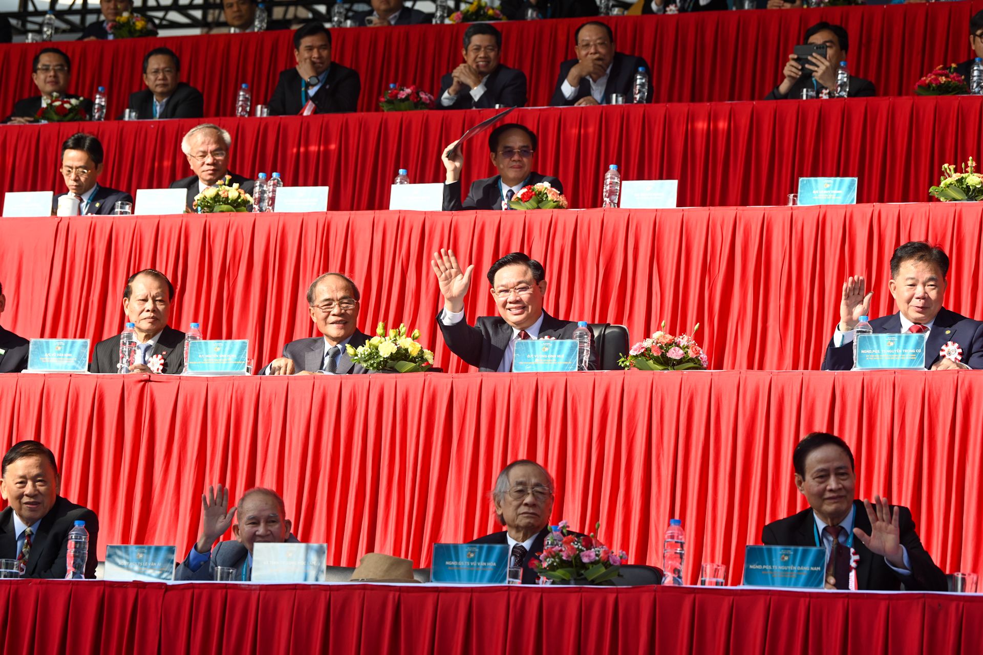 Chủ tịch Quốc hội Vương Đình Huệ và các đại biểu tại lễ kỷ niệm 60 năm Học viện Tài chính. Ảnh: DUY LINH