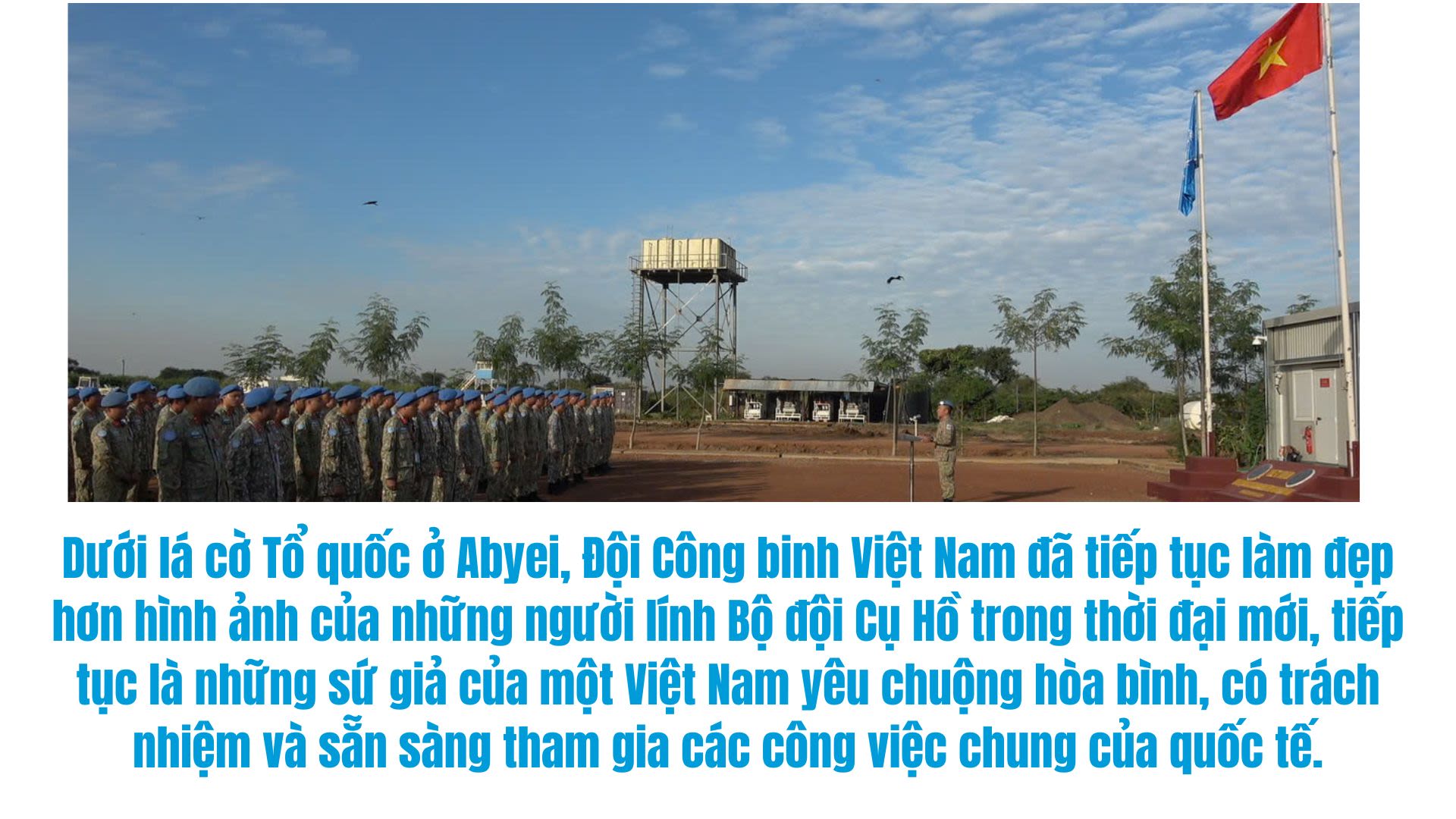 Dưới lá cờ Tổ quốc ở Abyei, Đội Công binh Việt Nam đã tiếp tục làm đẹp hơn hình ảnh của những người lính Bộ đội Cụ Hồ trong thời đại mới, tiếp tục là những sứ giả của một Việt Nam yêu chuộng hòa bình, có trách nhiệm và sẵn sàng tham gia các công việc chung của quốc tế.