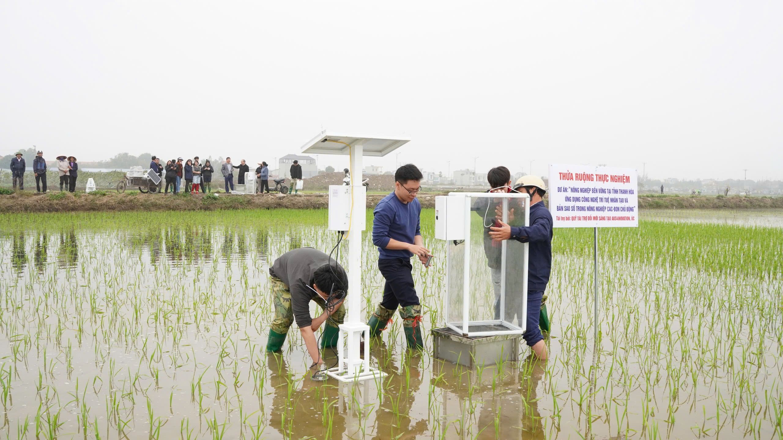 Dùng các cảm biến đo mực nước ruộng lúa tại Thanh Hóa