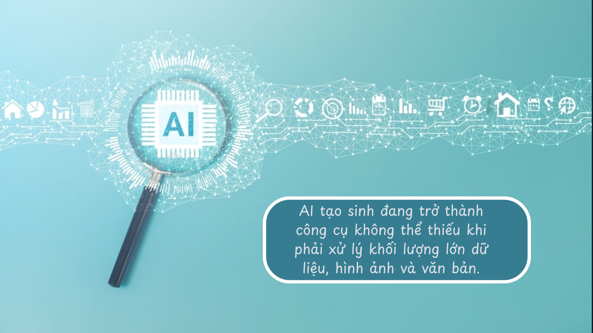 AI tạo sinh đang trở thành công cụ không thể thiếu khi phải xử lý khối lượng lớn dữ liệu, hình ảnh và văn bản.