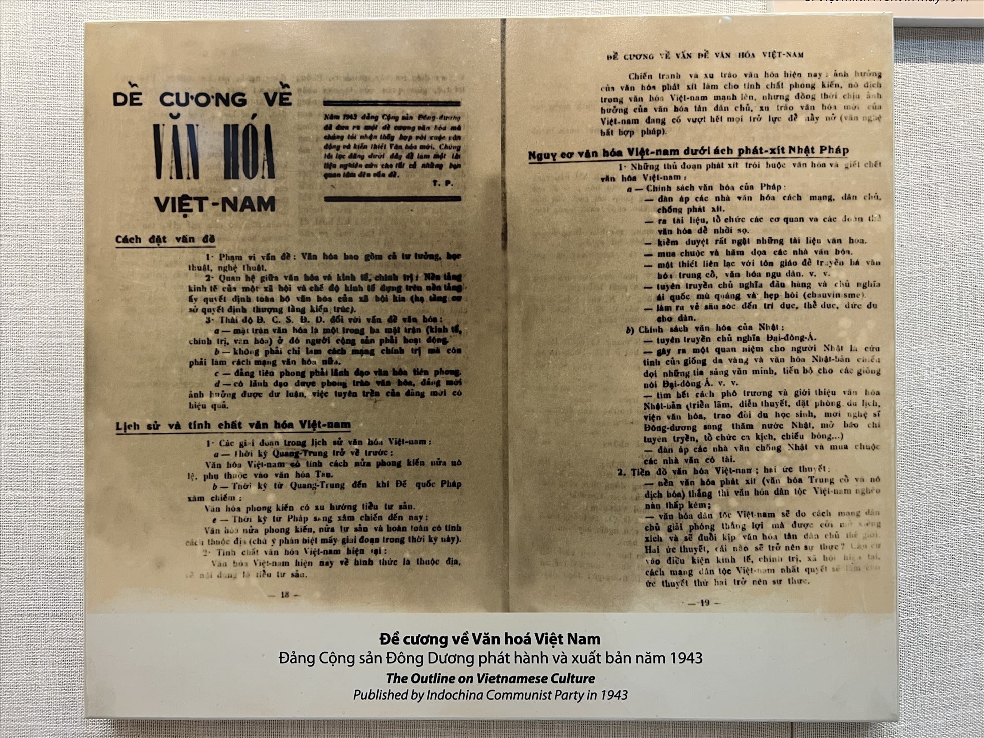 “Đề cương về Văn hóa Việt Nam” năm 1943 trưng bày tại Bảo tàng Lịch sử Quốc gia. (Ảnh: Hải Nguyễn)
