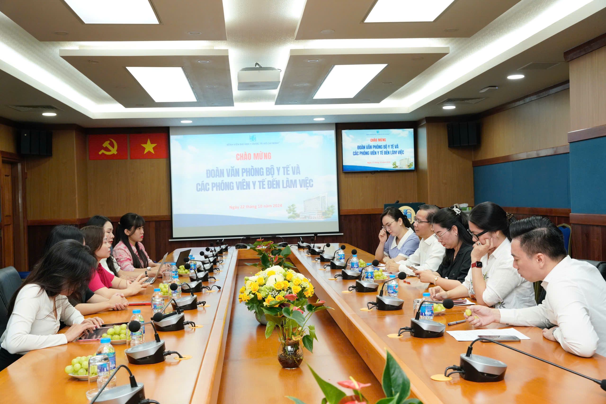 Phó Giáo sư, Tiến sĩ Nguyễn Minh Anh, Phó Giám đốc Bệnh viện Đại học Y Dược TP Hồ Chí Minh trao đổi với báo chí về công tác đấu thầu, mua sắm tại bệnh viện.