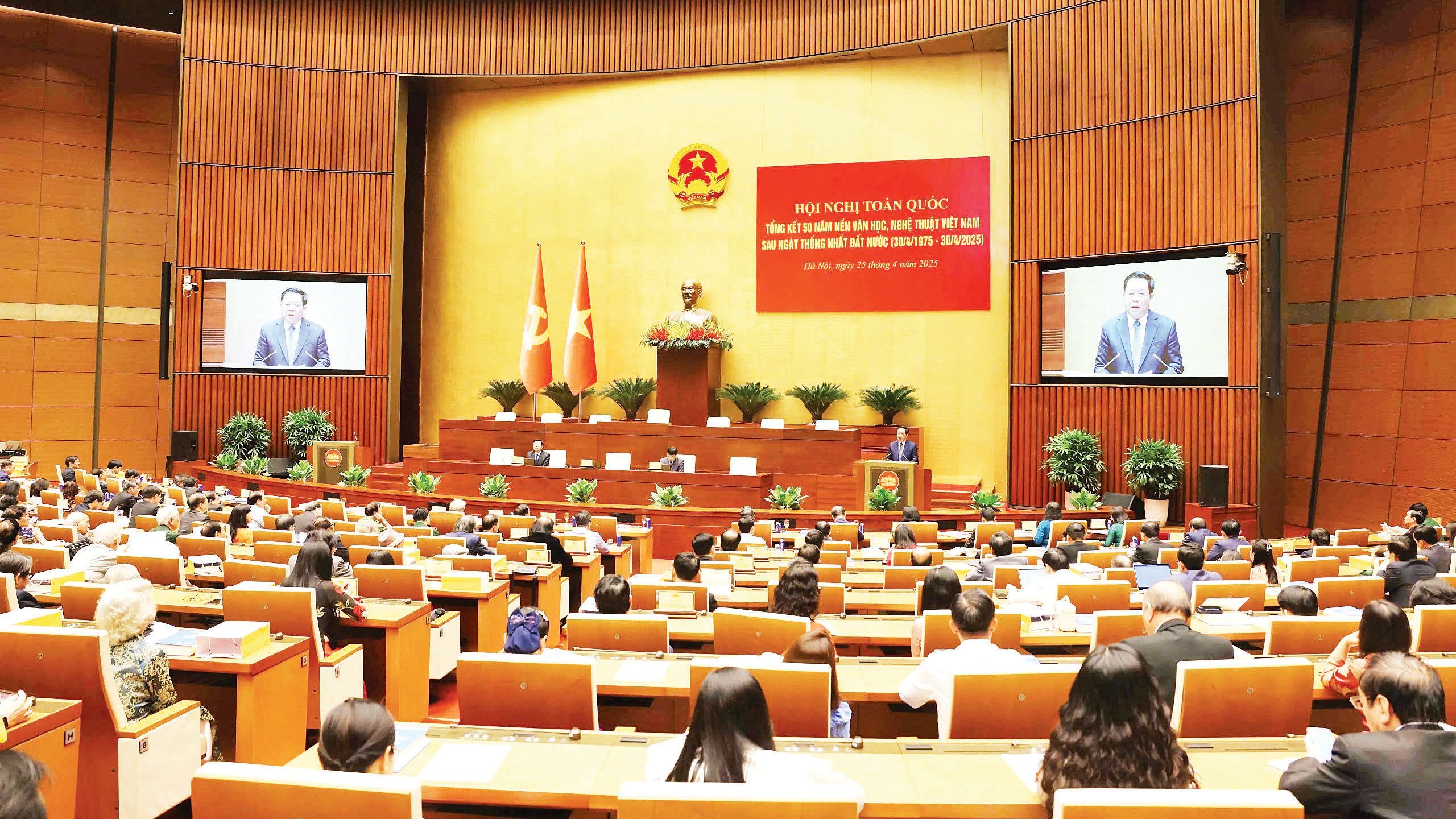Toàn cảnh hội nghị toàn quốc tổng kết 50 năm nền văn học, nghệ thuật Việt Nam sau ngày thống nhất đất nước. Ảnh: TTXVN
