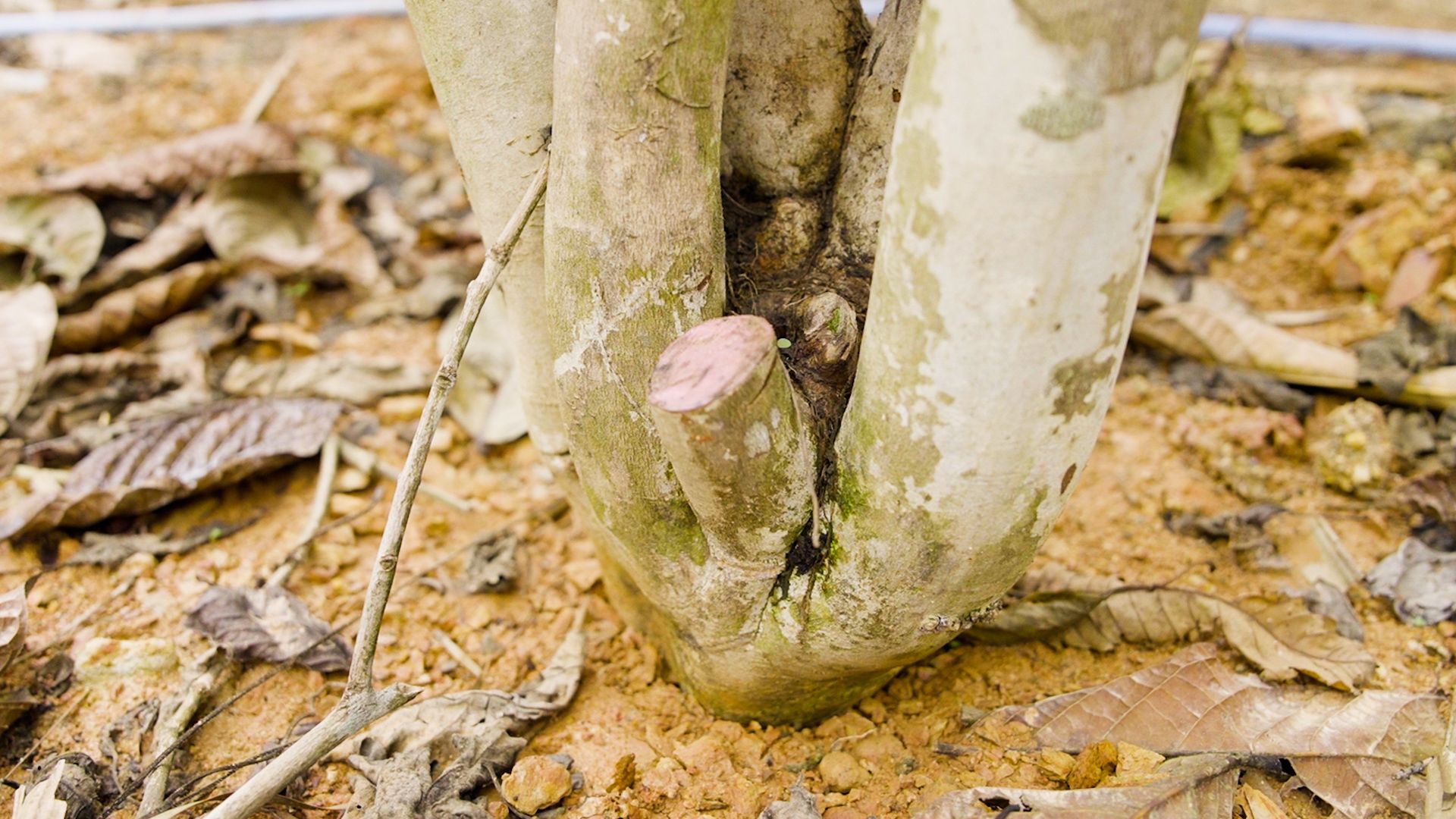 Bệ gốc cây Trà hoa vàng cổ thụ hàng trăm năm tuổi, có vanh gần 90 cm.