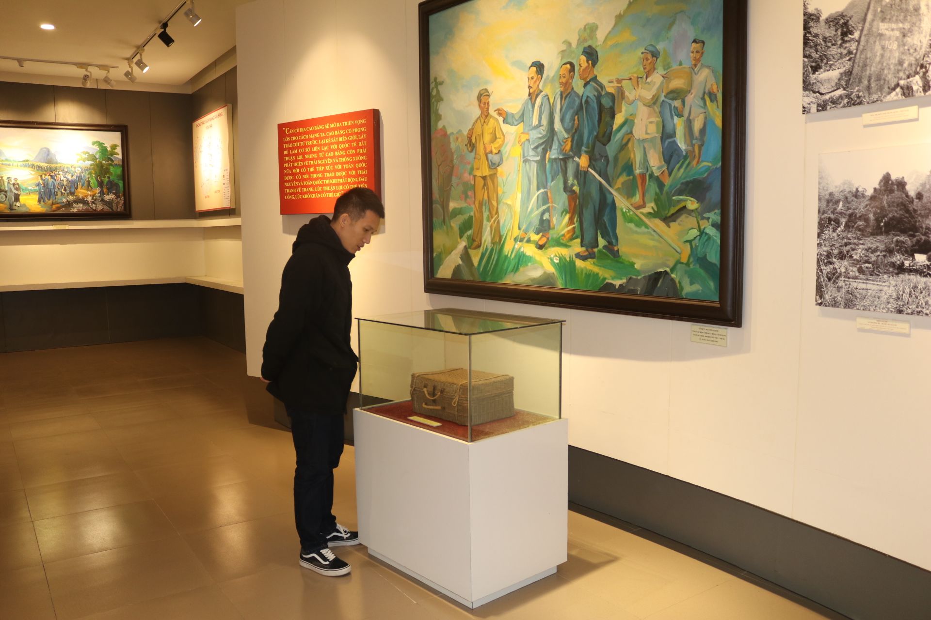 Nhà trưng bày Khu di tích Quốc gia đặc biệt Pác Bó trưng bày nhiều hình ảnh, hiện vật quý về những năm tháng Chủ tịch Hồ Chí Minh sinh hoạt, làm việc tại Pác Bó.