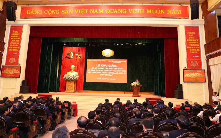 Lễ khai giảng Lớp bồi dưỡng, cập nhật kiến thức đối với cán bộ quy hoạch Ủy viên Trung ương Đảng khóa XIV (lớp thứ nhất) (8/7/2024).