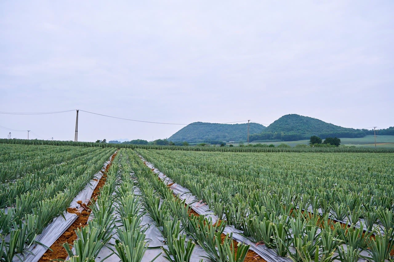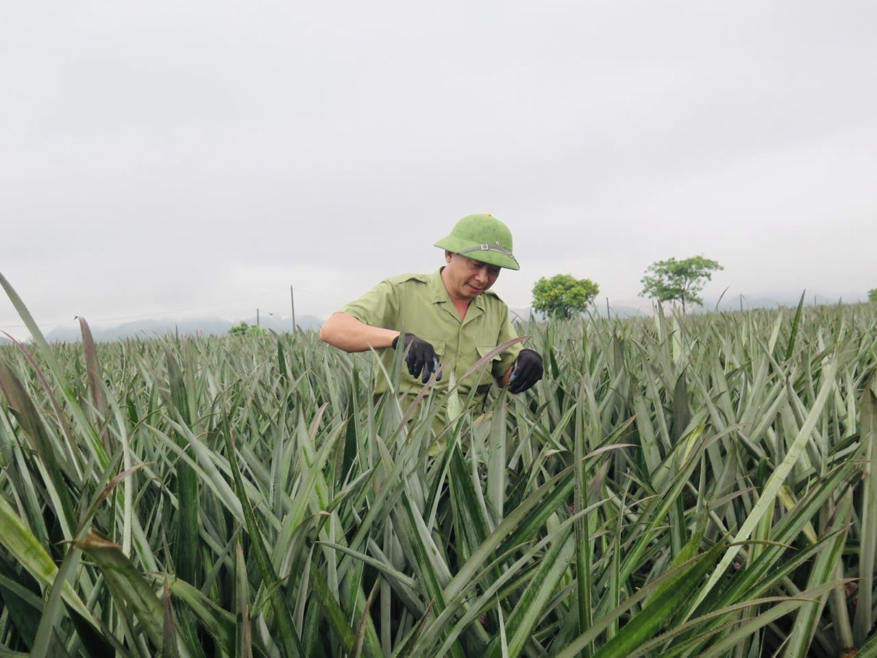Anh Phạm Ngọc Chi, Tổ trưởng tổ sản xuất kiêm Tổ trưởng tổ Đảng của chi bộ Bãi Sải đang chăm sóc đồng dứa